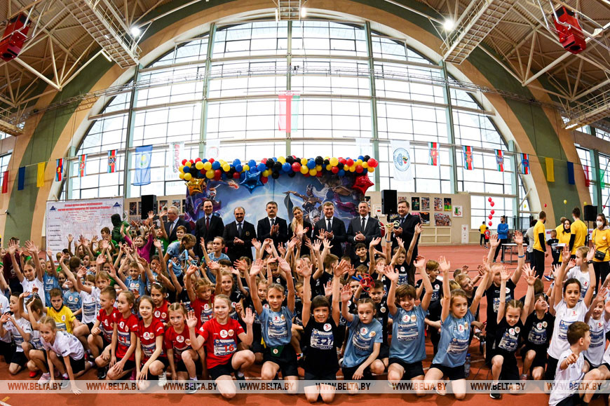 Замкнули тройку призеров юные спортсмены Гродненской области Анна Данилова, Артем Милашевский, Валерия Еремина, Игнат Перевышин, Ксения Побудей, Константин Тихончук, Светлана Балабанова и Кирилл Круковский - 1 мин. 06,68 сек.