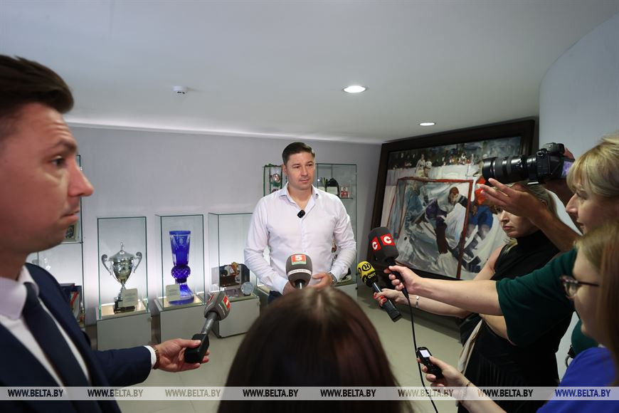31 августа, Минск /Корр. БЕЛТА/. Председатель Федерации хоккея Беларуси олимпийский чемпион Александр Богданович передал музею НОК Беларуси раритетный экспонат, передает корреспондент БЕЛТА.