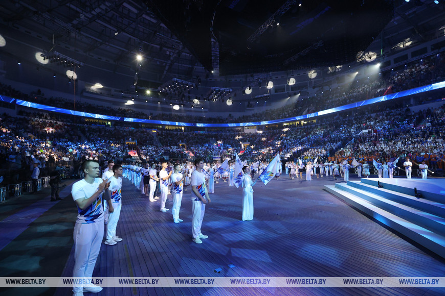5 августа, Минск /Корр. БЕЛТА/. Символический огонь II Игр стран СНГ зажгли на торжественной церемонии открытия в "Минск-Арене", передает корреспондент БЕЛТА.