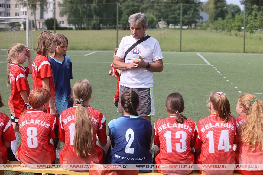 Сергей Балабанов - тренер ФСК "Гродненский", который сам раньше занимался футболом, а сегодня воспитывает молодых спортсменов, рассказывает, что подготовка к главным соревнованиям для девочек в Беларуси проходили усиленно и активно. "В целом неплохая команда у нас. Девчонки участвуют во многих соревнованиях в районе и в области. Стараемся, двигаемся. В некоторых соревнованиях наши девочки и в составе команд мальчишек играют. Кстати, мы чемпионы прошлого года "Кожаного мяча" среди девочек 2011-2013 годов рождения. Можно сегодня однозначно сказать, что интерес у девочек к футболу растет. С каждым годом это видно", - делится он.