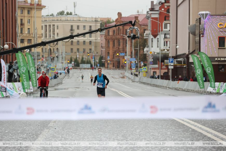 У мужчин в главном забеге на дистанции 21 км 97 м победил россиянин Ринас Ахмадеев, вслед за ним финишировали белорусы Роман Адамович и Владислав Прямов. После финиша победитель отметил, что хотел сразу вырваться в лидеры и в серьезном темпе двигаться. Рельеф у минской трассы довольно сложный, тем не менее все получилось и удалось добиться успеха с неплохим результатом. "В первый раз на Минском полумарафоне я бежал в 2018 году, тогда выиграть не удалось, зато сейчас победа за мной", - сказал Ринас Ахмадеев.