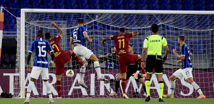 Главный конкурент "Ювентуса" в борьбе за чемпионское звание миланский "Интер" в 34-м туре сыграл вничью в гостях у "Ромы" (2:2) и теперь отстает от лидера на восемь баллов.