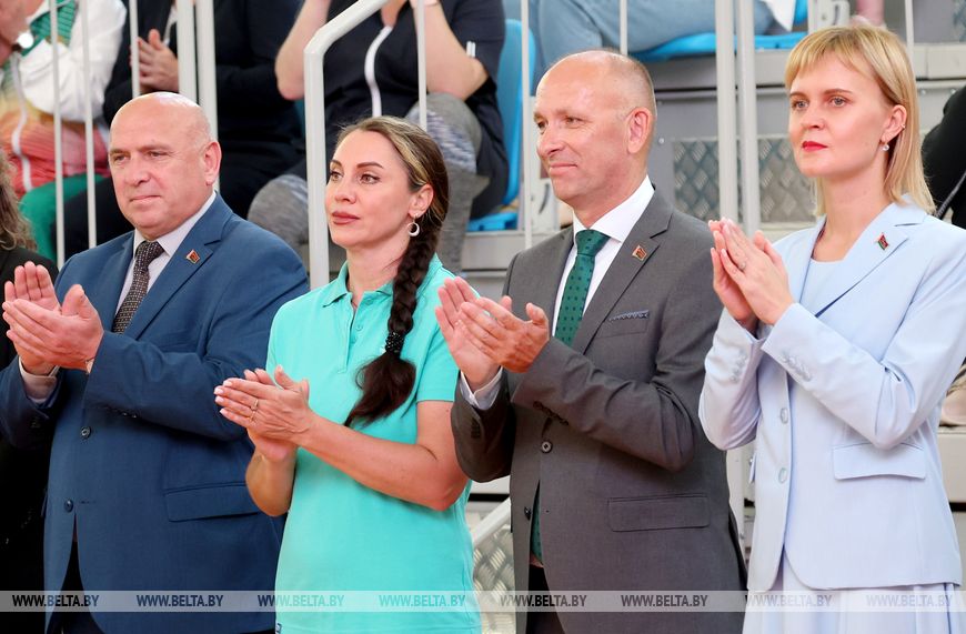 Поздравить спортсменов с началом чемпионата пришли гости, среди которых были представители областной и городской власти, а также отраслевого министерства. "Витебск - это не только столица белорусских батутистов, но это еще и школа мирового класса. Сегодня все знают и наш тренерский состав, и титулованных спортсменов. Сосредоточение в одном месте такого количества звезд высокого уровня данного олимпийского вида спорта - это уникальная ситуация, и нам приятно, что благодаря усилию многих, в том числе органов местной власти, спортивного сообщества, удалось создать такую вертикаль, которая эффективно работает, а ее пиком является витебская школа прыжков на батуте. Чемпионат этого года показывает, что подрастает очень хорошая смена. Можно говорить о перспективах еще на многие-многие годы", - рассказал журналистам заместитель министра спорта и туризма Олег Андрейчик.-0-