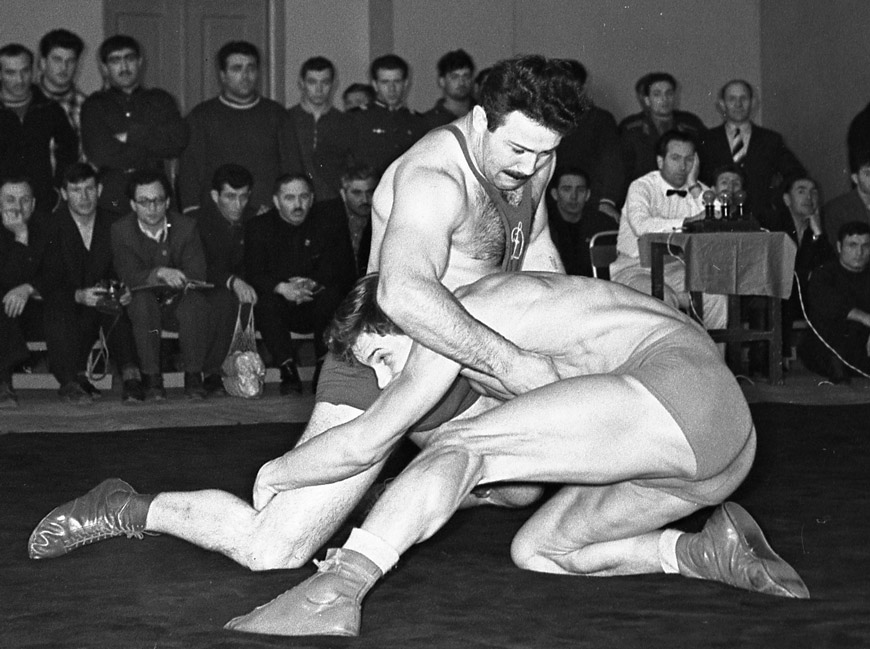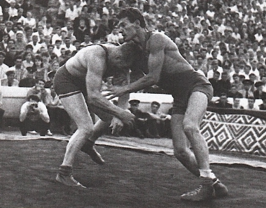 Если вы думаете, что полные трибуны на национальном стадионе "Динамо" собирали только футболисты или рок-звезды, то ошибаетесь. На рубеже 1950-60-х они заполнялись людьми, которые приходили посмотреть борцовские поединки. В том числе и потому, что на ковер выходил Александр Медведь. Сейчас это сложно представить, но так было - настолько популярна была борьба. Есть фотография 1959 года, запечатлевшая как раз такой момент.