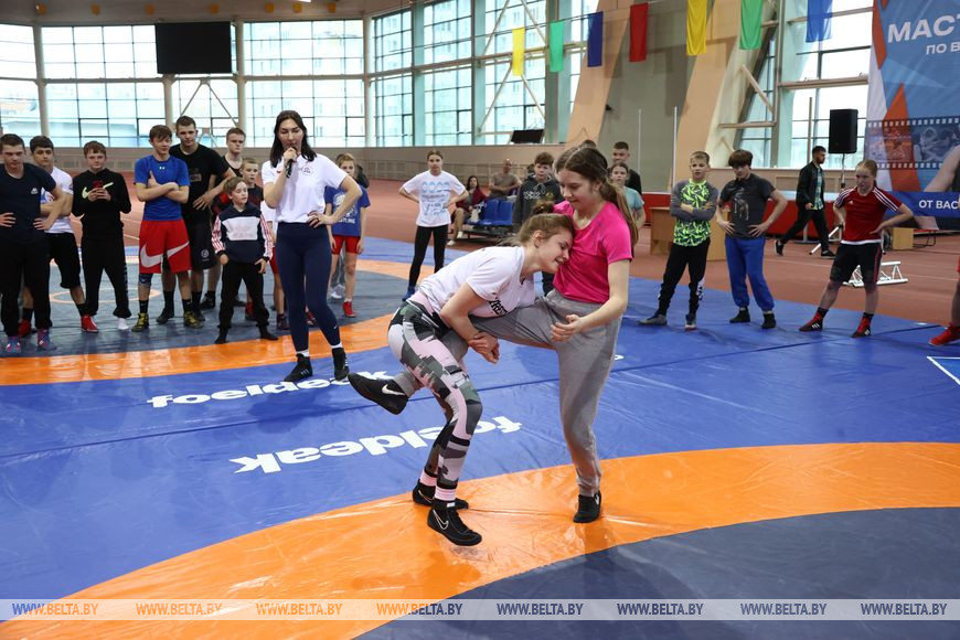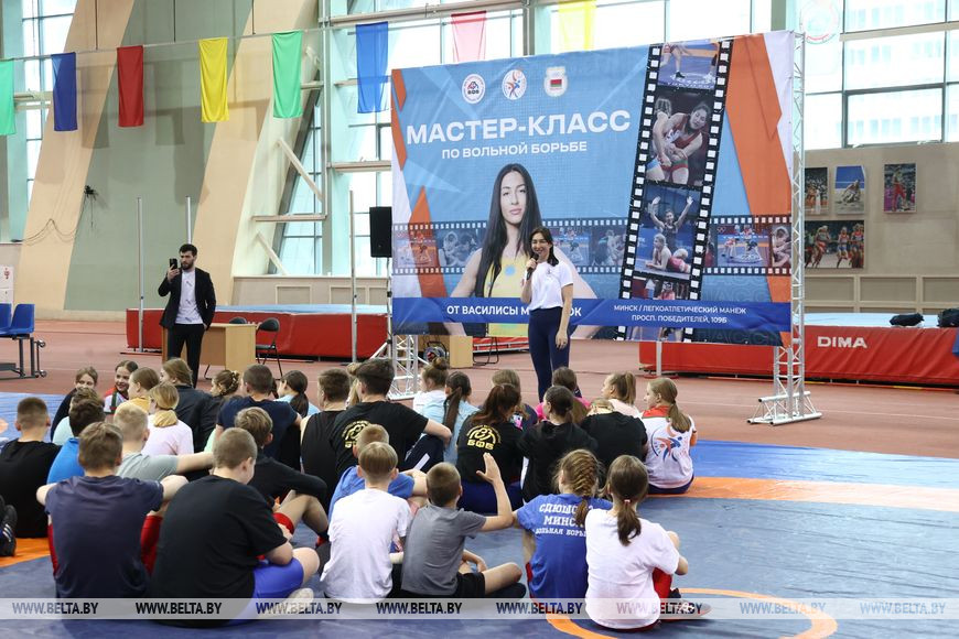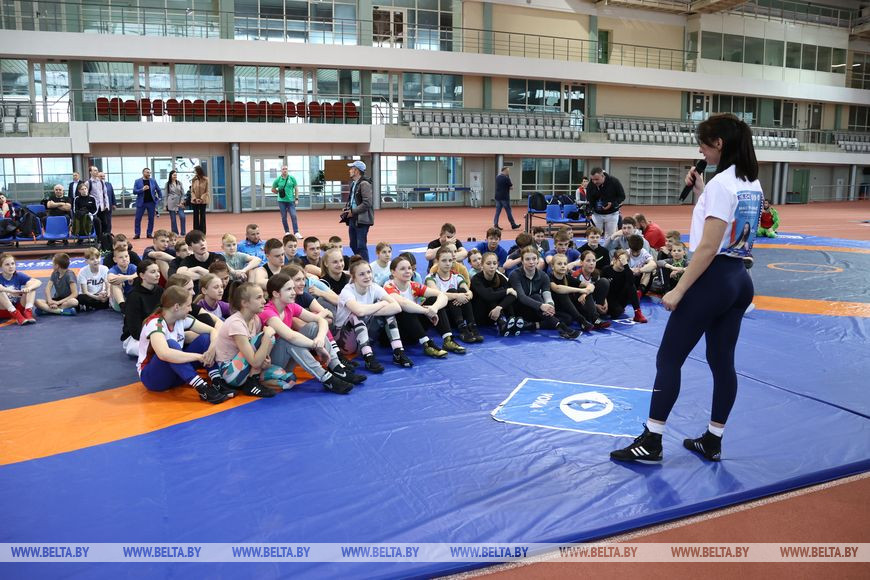 26 апреля, Минск /Корр. БЕЛТА/. Многократный призер чемпионатов мира и Европы по женской борьбе Василиса Марзалюк провела мастер-класс для юных борцов, сообщает корреспондент БЕЛТА.