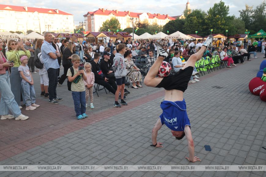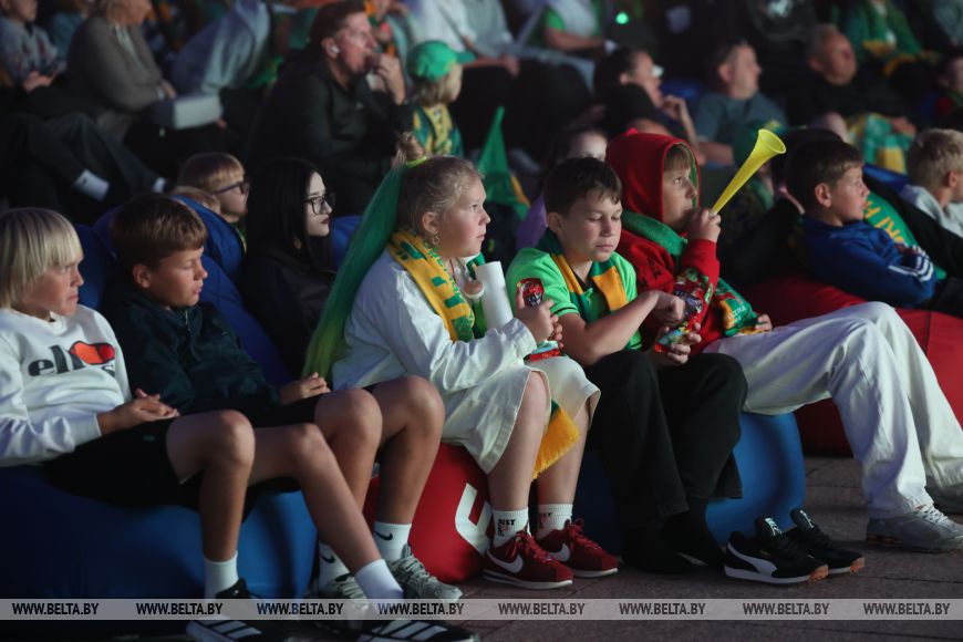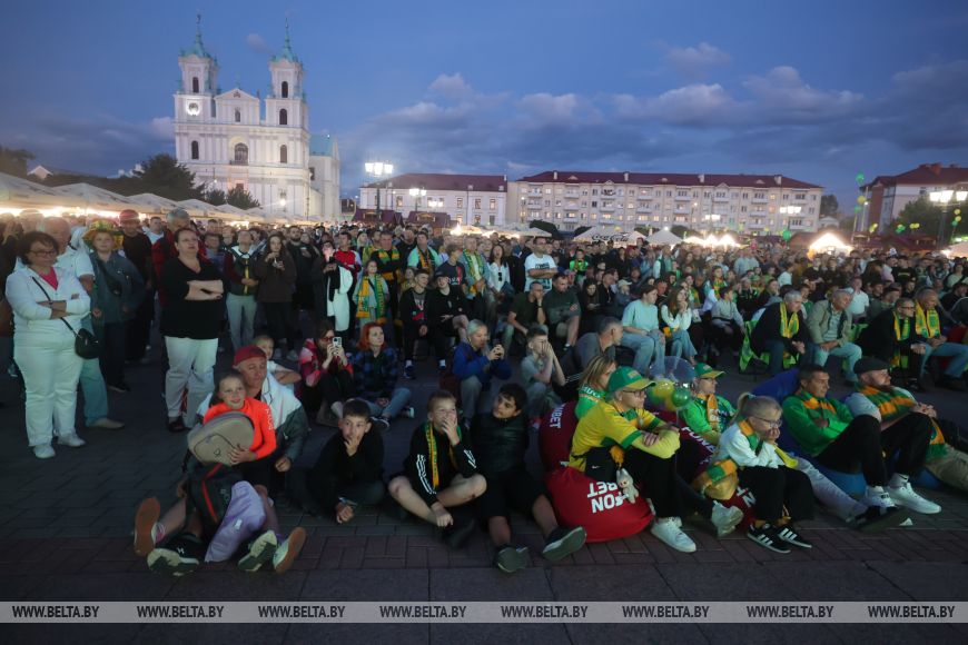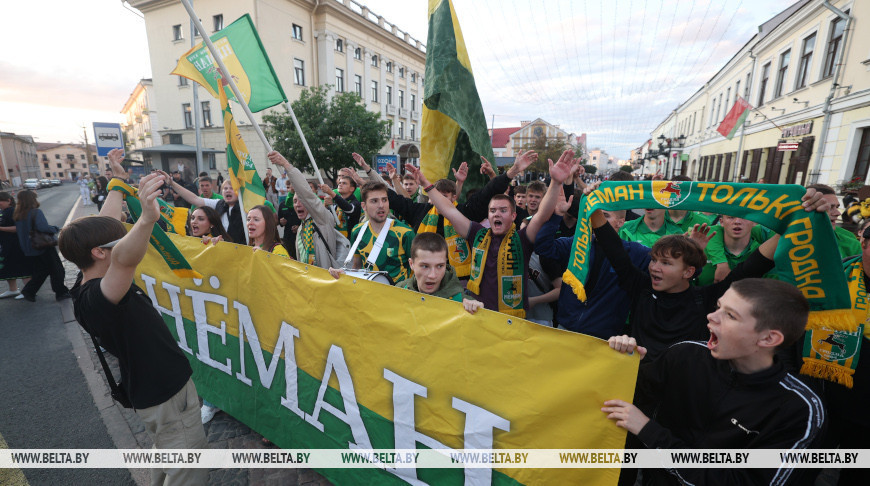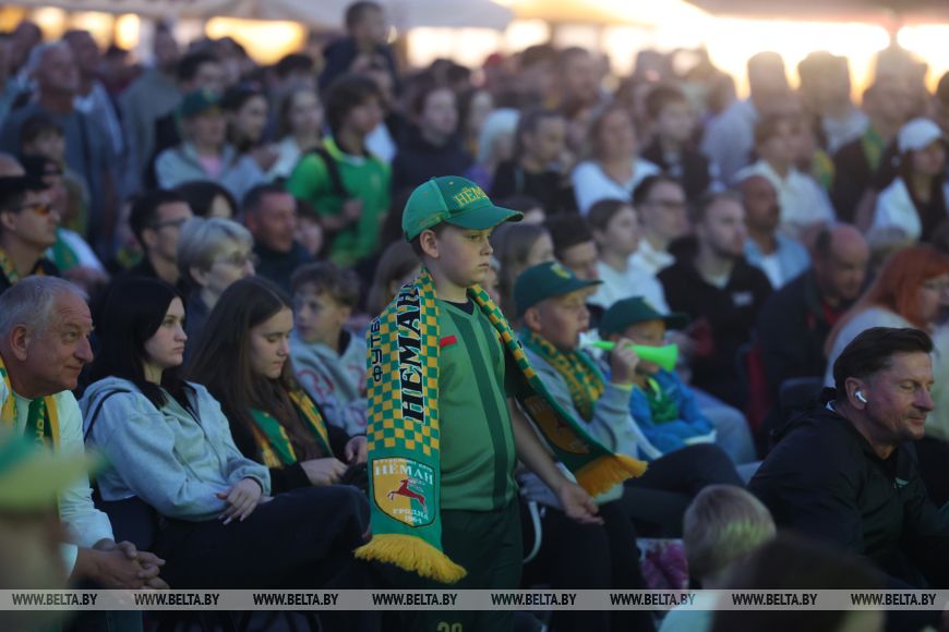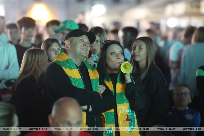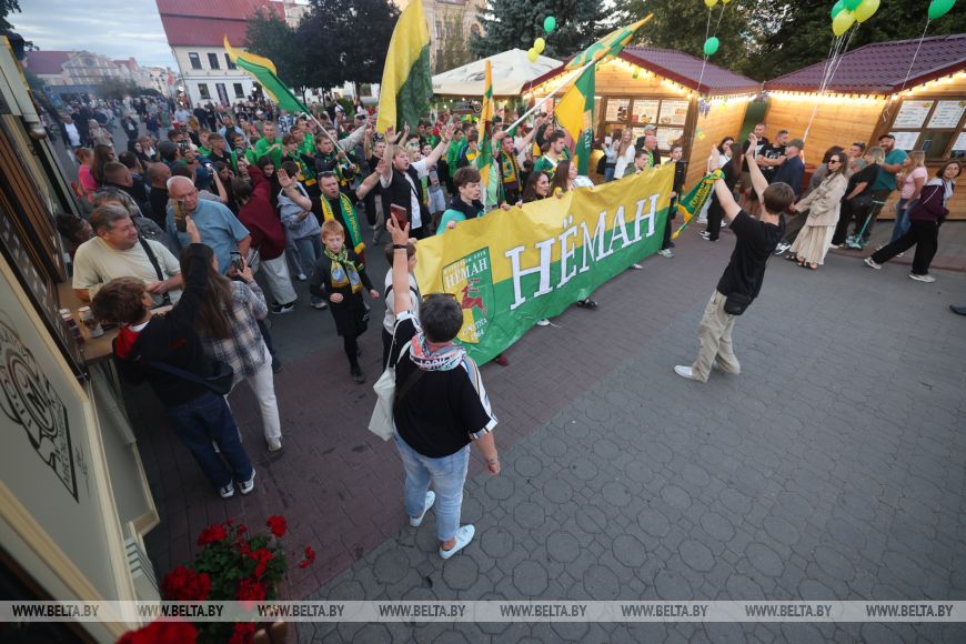 Уже за два часа до начала долгожданного матча на площади стартовала насыщенная культурная программа. Болельщики участвовали в конкурсах, выигрывали призы, подпевали артистам, выступавшим на открытой сцене. Становились в очередь за автографом экс-полузащитника "Немана" Валерия Жуковского. Целыми компаниями и семьями обосновывались за столиками на фуд-корте, чтобы вечер был вдвойне приятным.Не оставило равнодушными шествие фанатов гродненского "Немана". Болельщики в желто-зеленых шарфах и футболках в цветах "Немана" так искренне и ярко проявляли эмоции, что не разделить их было просто невозможно.