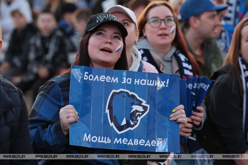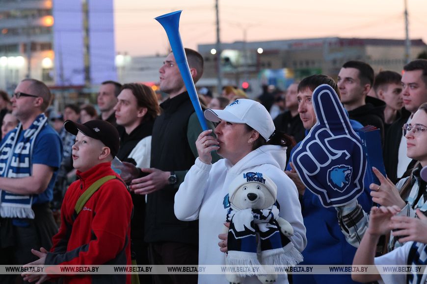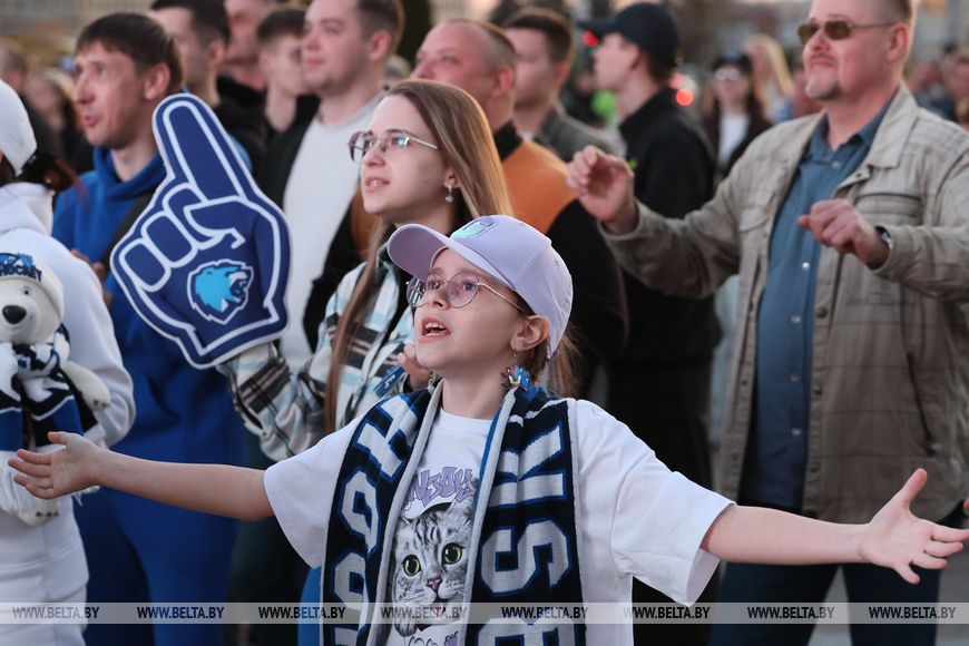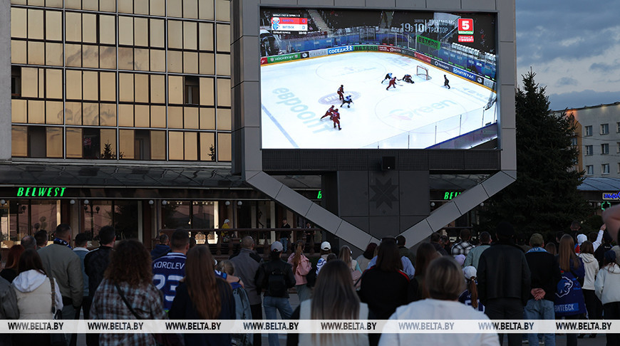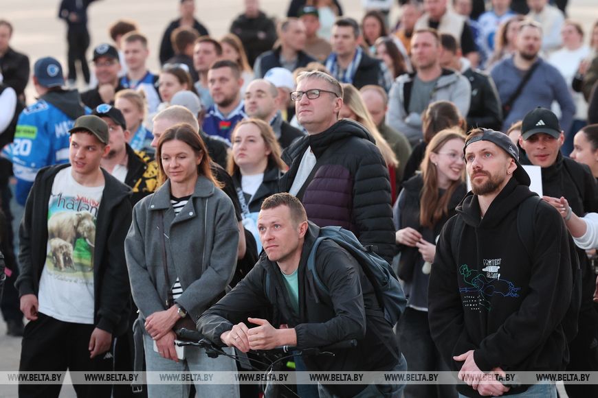 17 апреля, Витебск /Корр. БЕЛТА/. Сотни витебчан собрались на площади Победы, чтобы посмотреть трансляцию пятого матча финальной серии Кубка Президента между ХК "Витебск" - ХК "Юность".-0-