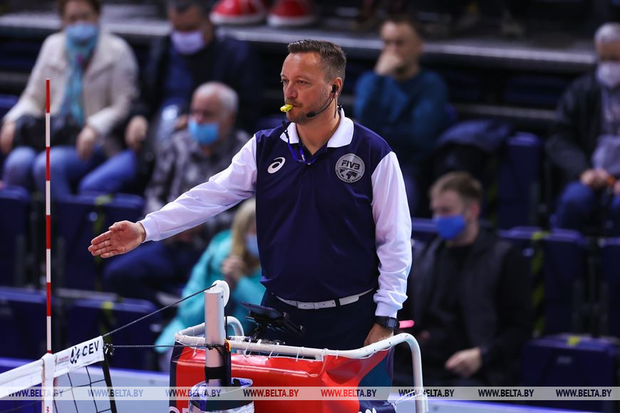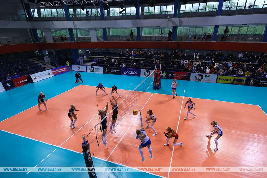 Начало первого сета прошло с преимуществом команды Эстонии, которая повела со счетом 7:3. Однако удержать перевес гости не смогли. Отличная игра белорусок способствовала тому, что при счете 7:7 тренер гостей Лоренцо Мичелли взял тайм-аут и в дальнейшем пытался вернуть свою команду на победный путь с помощью замен. До середины сета ни одна из дружин не могла добыть решающего преимущества. Затем хозяйкам площадки удался отличный спурт, и они дожали соперниц.