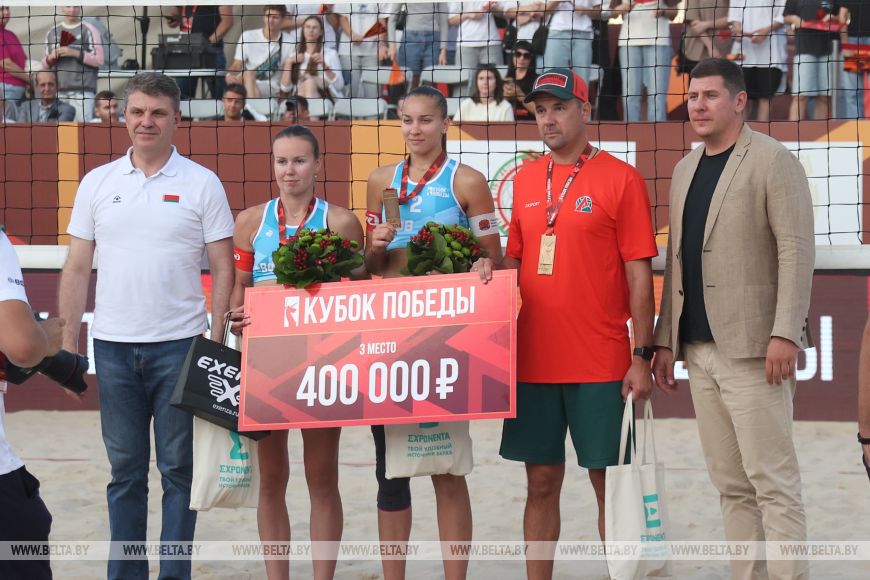 Соперницами Тишковой и Абраменко в матче за бронзу стали волейболистки калининградского "Локомотива" Арина Ряжнова и Елизавета Лудкова. В стартовой партии россиянки были впереди на шесть очков, хозяйки площадки сократили отставание до трех, но в концовке отрыв вернулся на табло - 21:15. Во втором сете Ряжнова и Лудкова методично наращивали преимущество и удержали белорусок на еще более почтительном расстоянии (21:12). В итоге 0:2, белоруски - четвертые.Третье место в мужском турнире заняли Олег Стояновский и Илья Лешуков из новоуренгойского "Факела", обыгравшие москвичей Константина Семенова и Вячеслава Красильникова (2:0).-0-