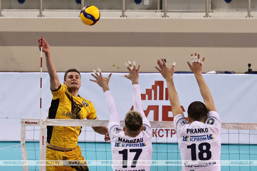 В третьем сете команды поменялись местами. Отлично начав этот отрезок матча, "Шахтер" сделал отличную заявку, чтобы завершить поединок, не отдав конкурентам ни одного отрезка встречи, но тяжесть ошибок в дополнении с отличной игрой минчан на блоке не позволила команде из города калийщиков развить успех.