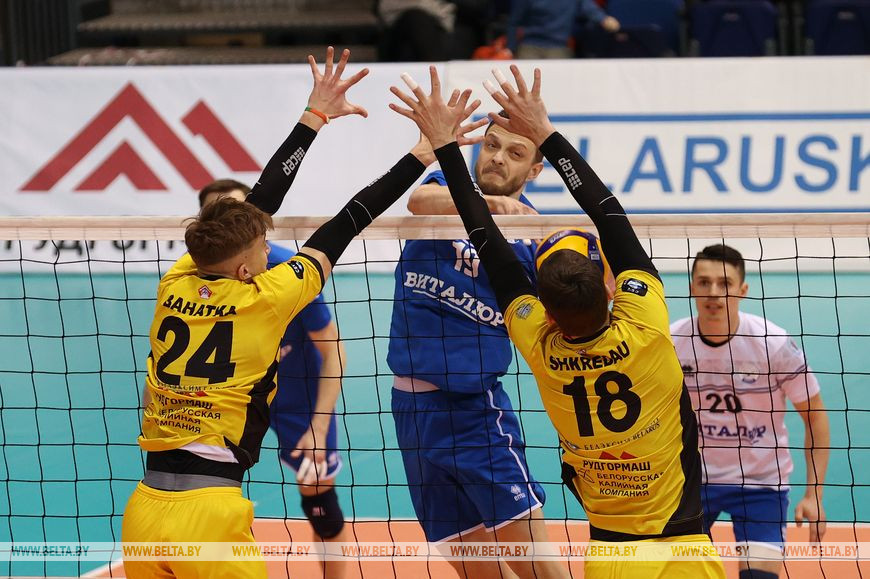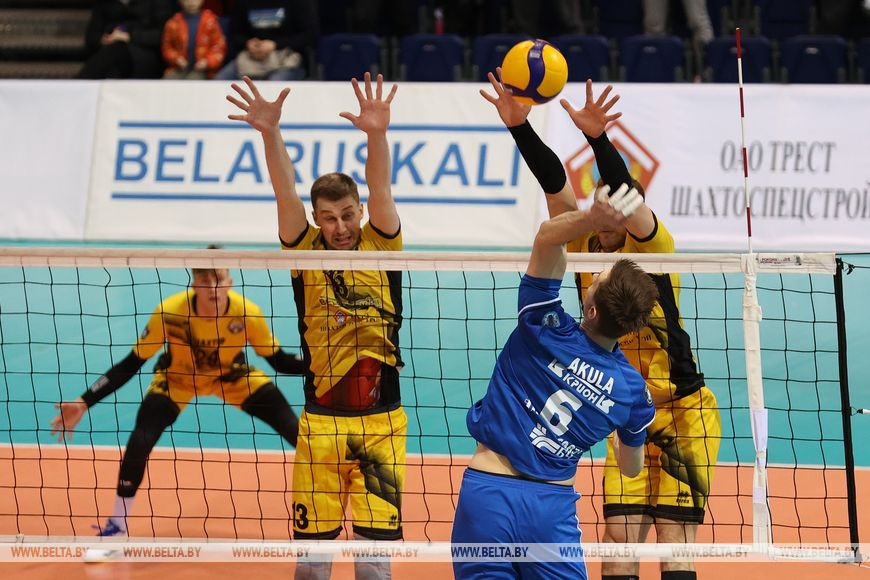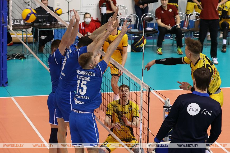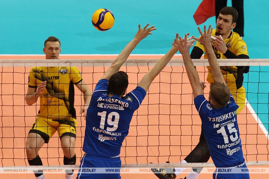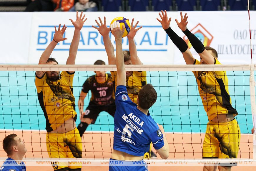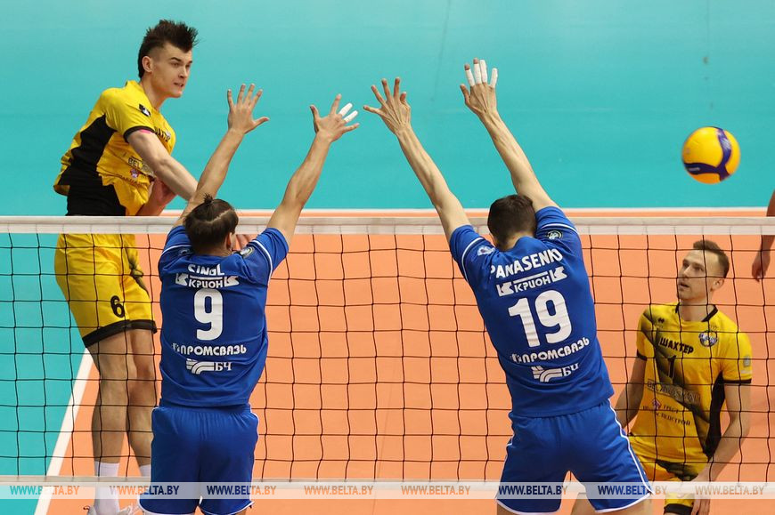 3 апреля, Минск /Корр. БЕЛТА/. Волейболисты солигорского "Шахтера" переиграли минский "Строитель" в третьем матче финальной серии со счетом 3:1 (25:16, 25:22, 20:25, 25:22) и завоевали золотые медали чемпионата Беларуси, сообщает корреспондент БЕЛТА.