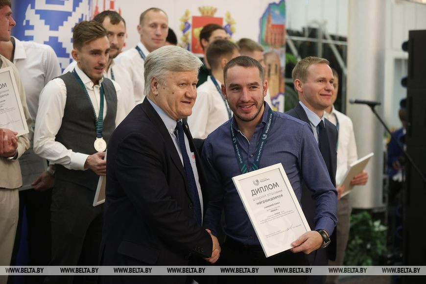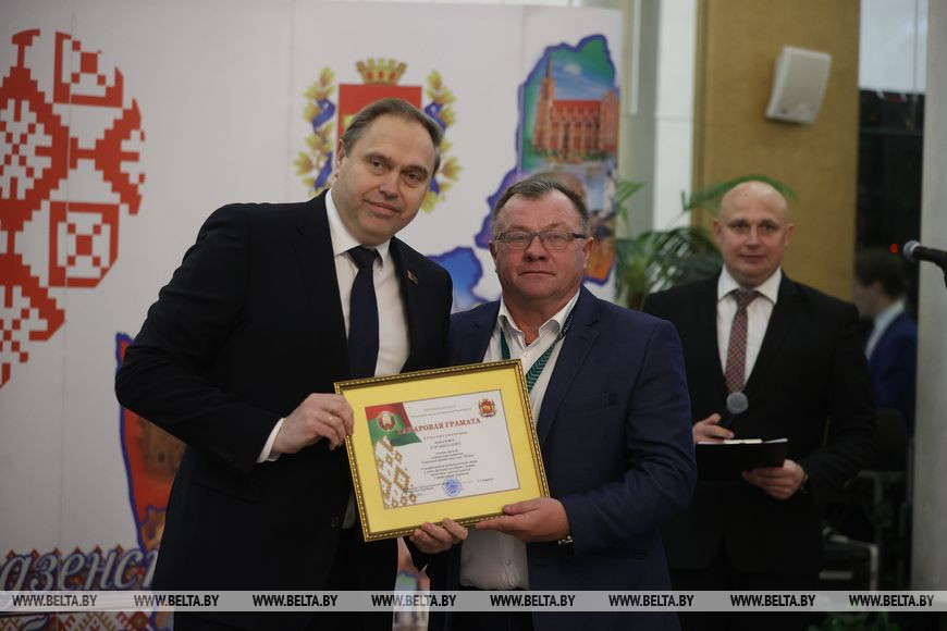 "Поздравляю вас с высокой наградой. Вы демонстрировали очень красивый, зажигательный футбол, которому отдавали себя и делали все во имя победы. Поздравляю тренерский штаб, разрабатывавший тактические схемы, которые оказались вашим соперникам не по зубам. Всех тех, кто ковал эти победы. Конечно, родных спортсменов, которые помогали восстанавливаться физически, психологически. Все вместе вы обеспечили высокое место в турнирной таблице, серебряные медали, вы стали вице-чемпионами. И от победы вас отделяют всего четыре буквы. Спасибо вам за колоссальные положительные эмоции, которые вы подарили болельщикам (очень много людей сопереживали, поистине радовались вашим победам). Мы всегда верили в то, что все самое лучшее еще впереди", - сказал председатель Гродненского облисполкома Владимир Караник.
