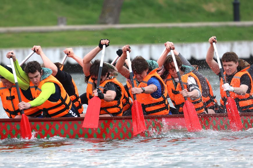"В конце учебного года мы решили собрать учащихся вузов в столице. Гребля очень сложна в подготовке, не каждый может ее быстро освоить, поэтому остановились на драгонботах. Они были впервые продемонстрированы в Беларуси в 2017 году, и после долгого перерыва мы организовали турнир, - сказал глава Белорусской ассоциации студенческого спорта Александр Богданович. - Я всю карьеру мечтал посоревноваться в центре Минска, но воплотил эту мечту уже не атлетом, а функционером. Честно говоря, ни разу не работал в драгонботе, самому очень интересно".