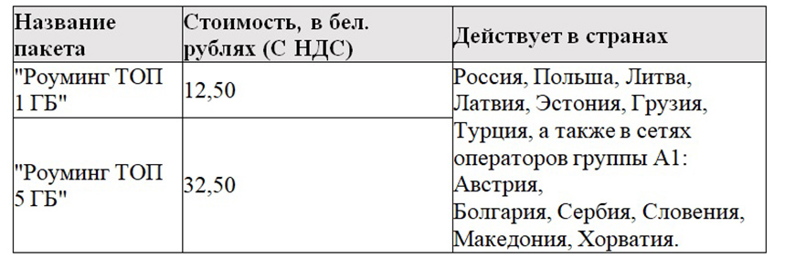 Компания А1 значительно расширяет географию использования роуминг-пакетов для интернета. Начиная с 11 июля 2023 года, роуминг-пакеты на 1 ГБ и 5 ГБ будут доступны еще и в Польше, Литве, Латвии, Эстонии, Турции и Грузии. Пакеты получат названия "Роуминг ТОП 1 ГБ" и "Роуминг ТОП 5 ГБ".