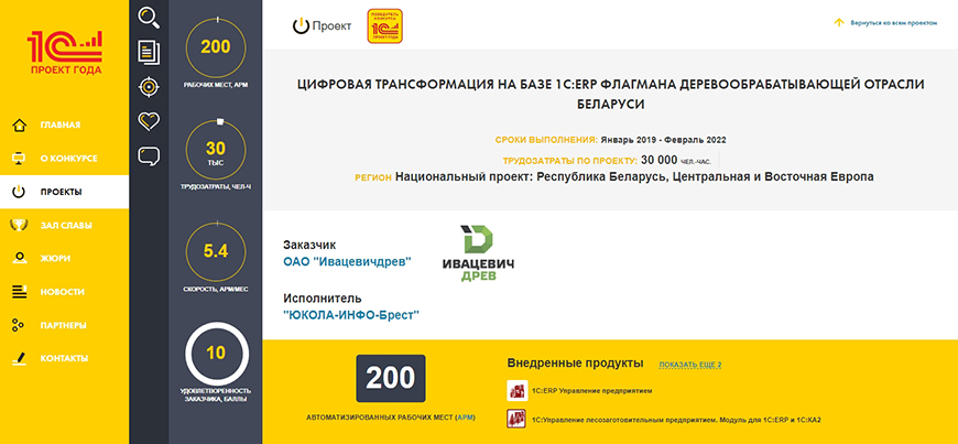 Лучшим региональным проектом, по мнению профессионального жюри, признан белорусский ERP-проект, реализованный на одном из крупнейших деревообрабатывающих предприятий – ОАО "Ивацевичдрев".