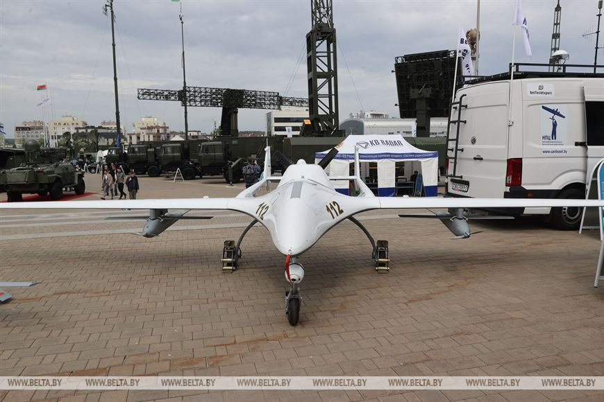 В этом году на форуме широко представлены беспилотные летательные аппараты. Больше всего таких экспонатов на выставке - от белорусских разработчиков. Пожалуй, самый интересный экземпляр - беспилотник "Буревестник" в модификации МН и МК. Причем второй вариант комплекса более любопытен. Модификация МК сочетает в себе разведывательные и ударные функции. Комплекс способен запустить с носителя два малоразмерных БЛА "МБ-30", которые работают по принципу барражирующего боеприпаса. Похожие разработки уже показали свою эффективность в современных конфликтах.
