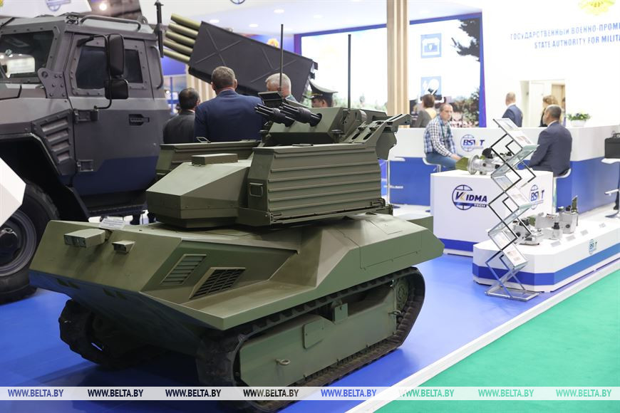 На форуме белорусские разработчики представили модернизацию советской самоходной установки ЗСУ-23-4 "Шилка". Машина предназначена для борьбы с низколетящими воздушными целями, в том числе беспилотниками. Дальность поражения - до 2500 метров, высота - до 1500 метров. Максимальная скорость цели, при которой установка может эффективно работать, ограничена 450 метрами в секунду.