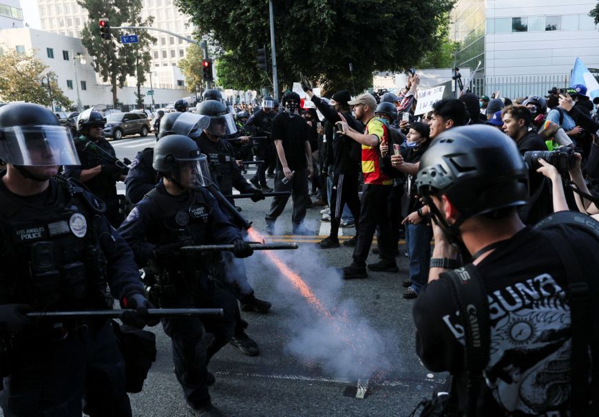 "Город скатывается в анархию", - описывает ситуацию в Лос-Анджелесе Fox News. В его изложении события в Лос-Анджелесе - это бунт против законных действий иммиграционной и таможенной полиции США, сопровождаемый насилием и подстрекаемый врагами нынешней власти - демократами.