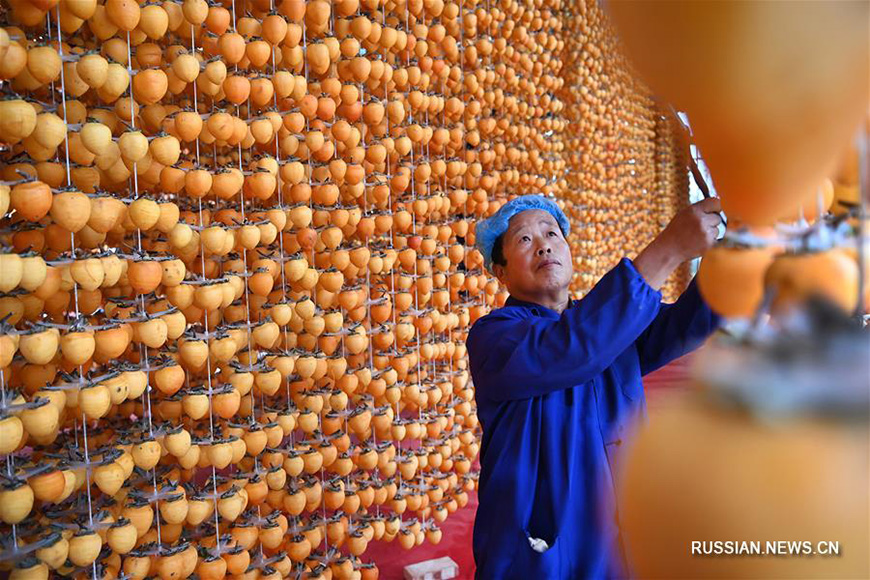 5 ноября, Фупин /БЕЛТА - СИНЬХУА/. Нынешней осенью в уезде Фупин провинции Шэньси (Северо-Западный Китай) собран богатый урожай хурмы. Местные предприятия, производящие сушеную хурму, в эти дни загружены работой.-0-