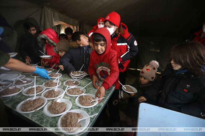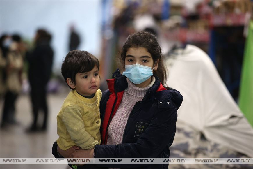 Власти Беларуси оказывают беженцам медицинскую помощь, предоставляют им продукты питания, одежду. Их разместили в торгово-логистическом центре недалеко от границы. Ранее беженцев посетили представители ООН и передали им гуманитарную помощь. Часть беженцев решили вернуться на родину.-0-