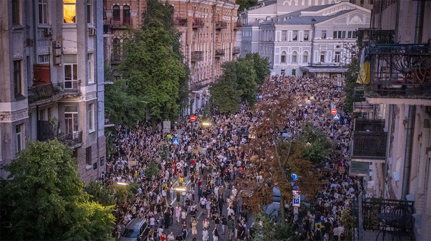 Протесты 22 июля стали первыми массовыми политическими акциями в Украине после начала украинского конфликта. Непривычно было слышать и оскорбительные кричалки в адрес Зеленского и его офиса. "Воспряли духом практически все оппозиционные Зеленскому силы. Даже СМИ Коломойского (украинский олигарх. - Прим. БЕЛТА), которые, несмотря на посадку своего собственника, демонстрируют, как правило, полную лояльность Банковой, на этот раз подробно освещали акцию протеста. На нее пришел лично мэр Кличко со своим братом и многие оппозиционные депутаты", - отмечает "Страна".