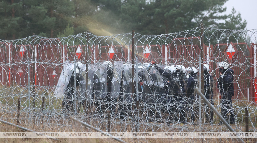 Владимир Путин также раскритиковал Польшу за применение водометов и слезоточивого газа против мигрантов с детьми на польско-белорусской границе. "Давайте посмотрим, как польские силовики ведут себя на границе. Все же вы видите, смотрите в интернете и по телевидению. Первое, что приходит в голову - детей жалко. Маленькие дети там, но нет - поливают водой, бросают гранаты со слезоточивым газом", - отметил Владимир Путин.-0-