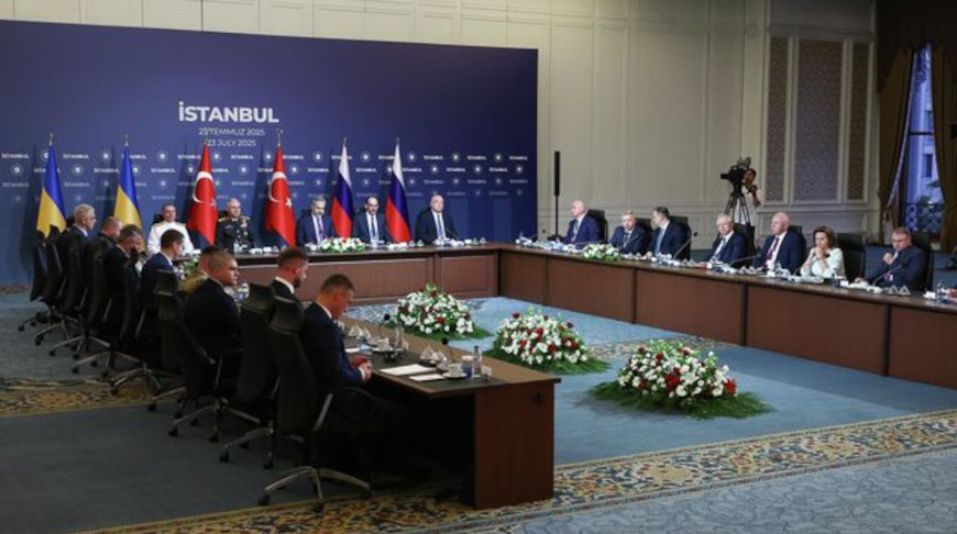 Третий раунд прямых российско-украинских переговоров состоялся вечером 23 июля в стамбульском дворце Чираган. На этот раз встреча длилась около 40 минут. По информации источника ТАСС, переговоры предваряла личная встреча глав делегаций РФ и Украины Владимира Мединского и Рустема Умерова.