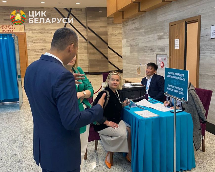 Голосование на референдуме идет активно, в некоторых местах наблюдаются очереди, люди приходят семьями. На участках для голосования присутствуют представители общественных объединений, которые осуществляют наблюдение, а также международные наблюдатели от СНГ, ШОС и по линии двустороннего сотрудничества.