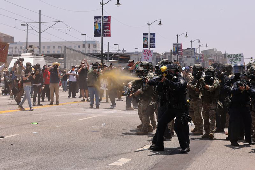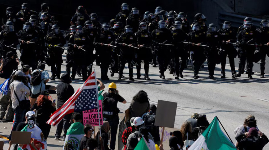 7 июня в Лос-Анджелесе вспыхнули беспорядки из-за рейдов против нелегальных мигрантов. Полиция начала применять слезоточивый газ и светошумовые гранаты против протестующих. Президент США Дональд Трамп распорядился направить в Лос-Анджелес 2 тыс. военнослужащих Нацгвардии. На данный момент там уже находятся 300 военнослужащих и готовятся к отправке еще 500 морских пехотинцев. Это первый случай за последние десятилетия, когда американский лидер привлекает Нацгвардию без просьбы или согласия штата. В связи с этим губернатор Калифорнии Гэвин Ньюсом заявил, что подаст в суд на Трампа.-0-