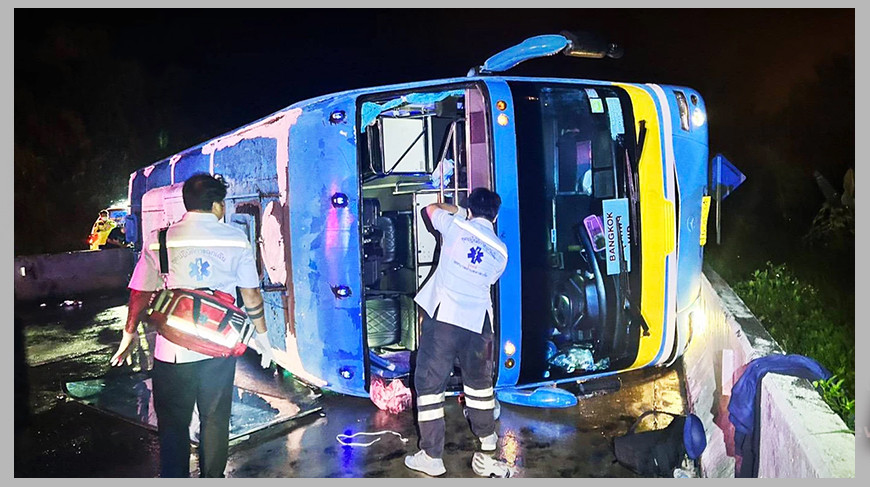 По данным издания, ДТП произошло в субботу вечером (8 ноября) в горной провинции Лампанг на севере королевства. Автобус ехал из города Чиангмай в Бангкок, всего в нем было 38 человек. Машина потеряла управление и врезалась в ограждение на шоссе, после чего перевернулась. Двоих пострадавших госпитализировали в местную больницу.
