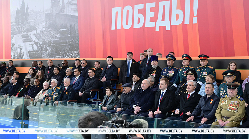 В параде на Красной площади приняли участие военные из Азербайджана, Беларуси, Вьетнама, Египта, Казахстана, Кыргызстана, КНР, Лаоса, Монголии, Мьянмы, Узбекистана, Туркменистана и Таджикистана. На центральной трибуне за парадом наблюдал президент России Владимир Путин, а также 27 зарубежных лидеров.-0-