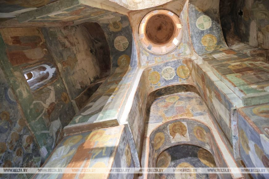Спасо-Преображенская церковь построена в XII веке, храм расписан уникальными фресками, которые на 90% сохранились. Первые реставрационные работы начались в 1991 году. У стен церкви в последние годы также идут раскопки. В 2015 году археологи установили, что храм в первоначальном виде был значительно больше. В свое время к нему были пристроены галереи, а со стороны входа находился экзонартекс. В 2018 году специалисты на глубине около 3 м откопали остатки помещения, где, предположительно, мог быть захоронен отец Евфросинии Полоцкой. Примеров такого подземелья в древнерусской архитектуре X-XIII веков в Восточной Европе не встречалось, что подтверждает индивидуальный подход в строительстве храма по заказу святой.-0-