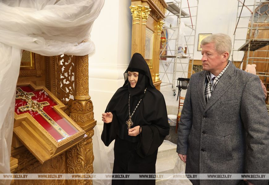 Министр отметил, что полоцкая земля богата людьми, которые прославили Беларусь и внесли вклад в развитие мировой культуры. Много усилий было приложено, чтобы обитель жила и люди сюда приезжали. "Мы видим, насколько мысли и сама работа соединяются и приносят результат. Государство внимательно относится к истории монастыря, выделяет серьезные средства, чтобы все задумки осуществились. Сегодня побеседовали со строителями, все работы в Спасо-Преображенском храме идут по графику. Опасений, что реставрация затянется и не завершится в 2024 году (как запланировано), нет", - сказал Анатолий Маркевич.