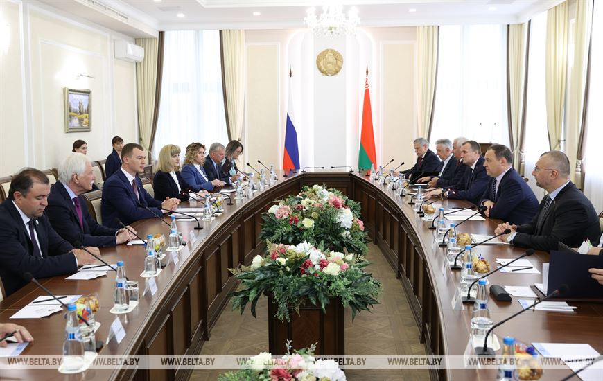 "В первую очередь для нас важны межрегиональные интеграционные процессы, на это ориентирует президент России. Мы интересуемся продукцией машиностроительного комплекса Беларуси - МАЗа, БЕЛАЗа. Еще одно важное направление сотрудничества - переработка сельхозпродукции. Кроме того, мы заинтересованы в том, чтобы поставлять современные самолеты в Беларусь - новые "Суперджеты", которые производятся в Комсомольске-на-Амуре", - сказал Михаил Дегтярев.