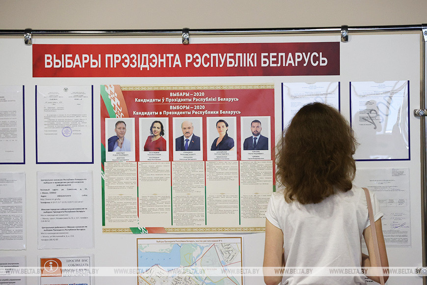 Кандидатами в президенты зарегистрированы пять человек: Андрей Дмитриев, Анна Канопацкая, Александр Лукашенко, Светлана Тихановская, Сергей Черечень. ЦИК сформированы 153 территориальные избирательные комиссии и 5723 участковые комиссии. Образовано 5767 участков для голосования, в том числе 231 - в санаториях, профилакториях, домах отдыха, больницах и других организациях здравоохранения, оказывающих медицинскую помощь в стационарных условиях, 13 - в воинских частях и 44 - за пределами Беларуси.