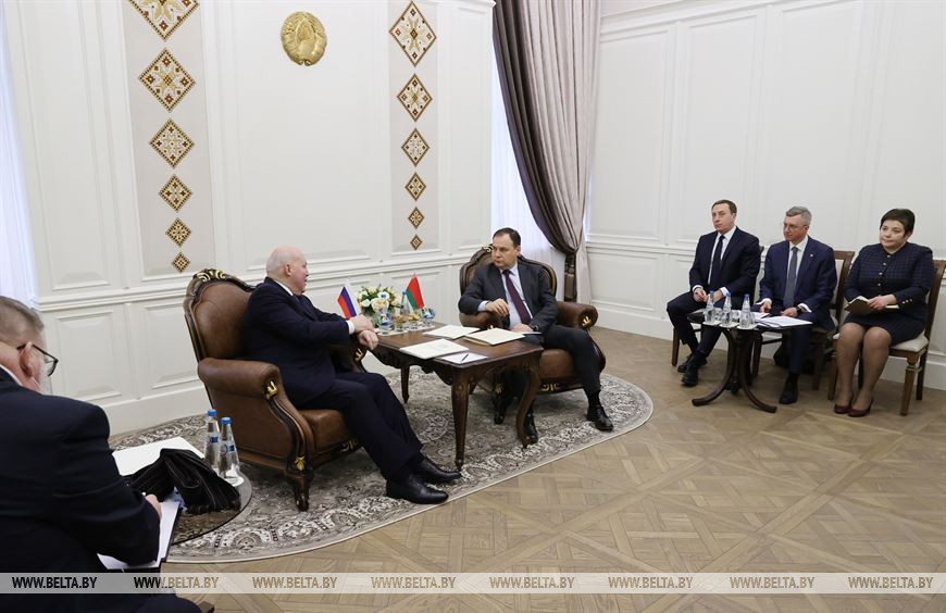 19 января, Минск /Корр. БЕЛТА/. Беларуси и России надо двигаться в сторону слияния своих потенциалов, заявил премьер-министр Беларуси Роман Головченко во время встречи с Чрезвычайным и Полномочным Послом России в Беларуси Дмитрием Мезенцевым, сообщает корреспондент БЕЛТА.