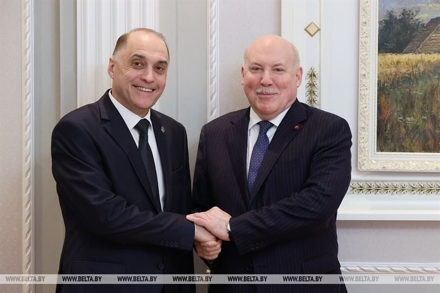 25 февраля, Минск /Корр. БЕЛТА/. Государственный секретарь Совета Безопасности Республики Беларусь Александр Вольфович 25 февраля встретился с Чрезвычайным и Полномочным Послом России в Беларуси Дмитрием Мезенцевым. Об этом корреспонденту БЕЛТА сообщили в Госсекретариате Совета Безопасности.