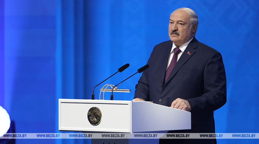 "Понимая нависшую угрозу войны, руководство Российской Федерации потребовало гарантии безопасности от спонсоров превращения Украины в "Антироссию". Чем это закончилось, мы знаем, - заметил белорусский лидер. - Усилиями Соединенных Штатов и их сателлитов в родной нам стране развязана полномасштабная война "до последнего украинца", в результате которой только в течение года погибло и искалечено около полумиллиона человек с обеих сторон! Миллионы стали беженцами. На горизонте в результате замаячила Третья мировая с ядерными пожарами".