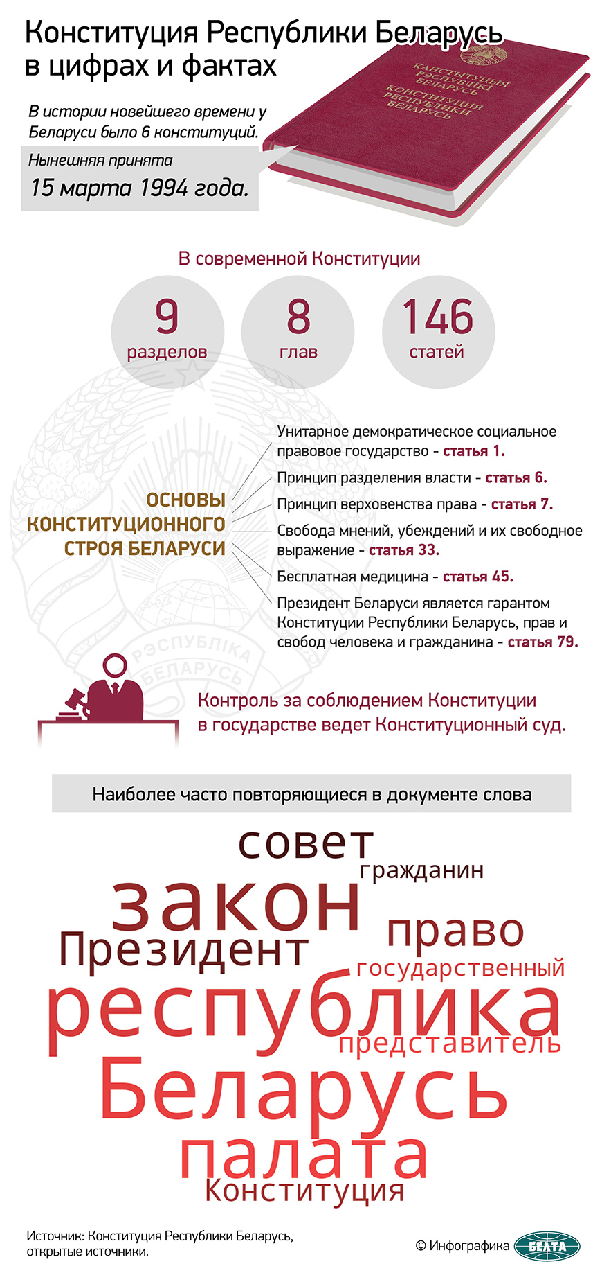 "С Основным законом нашей страны мы прошли путь становления первого суверенного государства на нашей земле. И значение этой Конституции, наверное, будет определяться прежде всего этим фактом. Принятая 27 лет назад Конституция стала символом новой эпохи - свободной, мирной, стабильной жизни белорусского народа", - заявил глава государства.