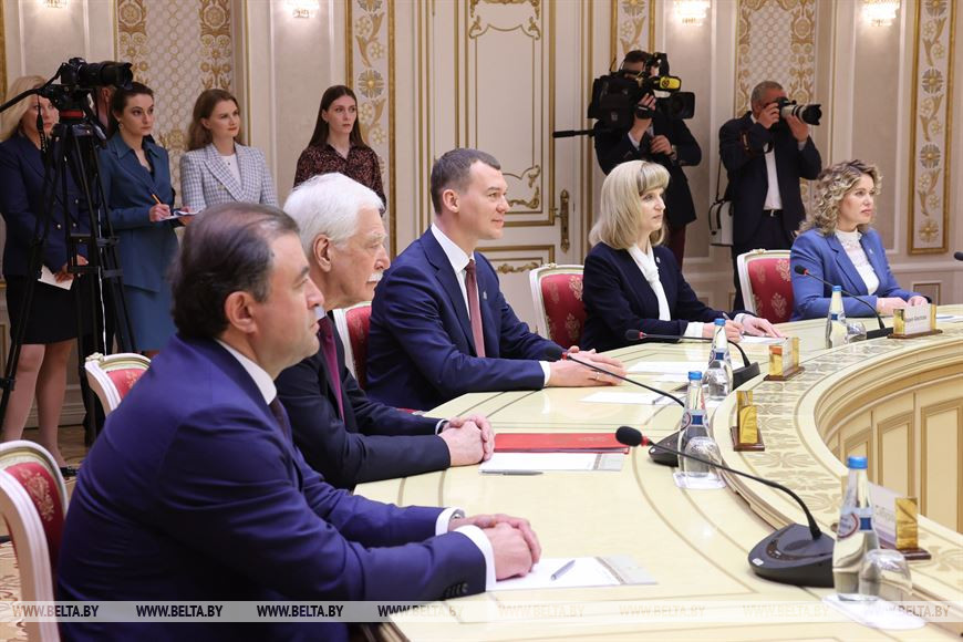 Глава государства акцентировал внимание, что для развития торгово-экономического сотрудничества вопрос расстояний сейчас не играет большой роли. "Средства связи у нас нормальные. Поэтому мы должны торговать. А торговля - основа всякой экономики. Мы можем поставлять вам и оборудование, и технику разную, и стройматериалы, и продовольствие, и промышленную продукцию, - сказал Президент. - Но это слишком просто. Надо переходить к кооперации. И сейчас не было бы счастья, да несчастье помогло - момент, чтобы создавать кооперационные предприятия. Мы готовы к тому, чтобы не только вы к нам приезжали и создавали здесь по кооперации предприятия, мы готовы работать у вас - в Хабаровске, во Владивостоке. Если будет такое пожелание. Вы знаете нашу экономику, она избыточная для Беларуси - экспорт у нас почти столько, сколько мы потребляем. Поэтому мы можем развивать некоторые направления и в других странах, регионах Российской Федерации".
