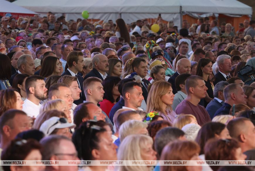 10 июля, Шкловский район /Корр. БЕЛТА/. Исполнитель Сергей Пархоменко, более известный как Серега, во время республиканского праздника "Купалье" в агрогородке Александрия Шкловского района проверил на крепость рукопожатие Президента Беларуси Александра Лукашенко, передает корреспондент БЕЛТА.