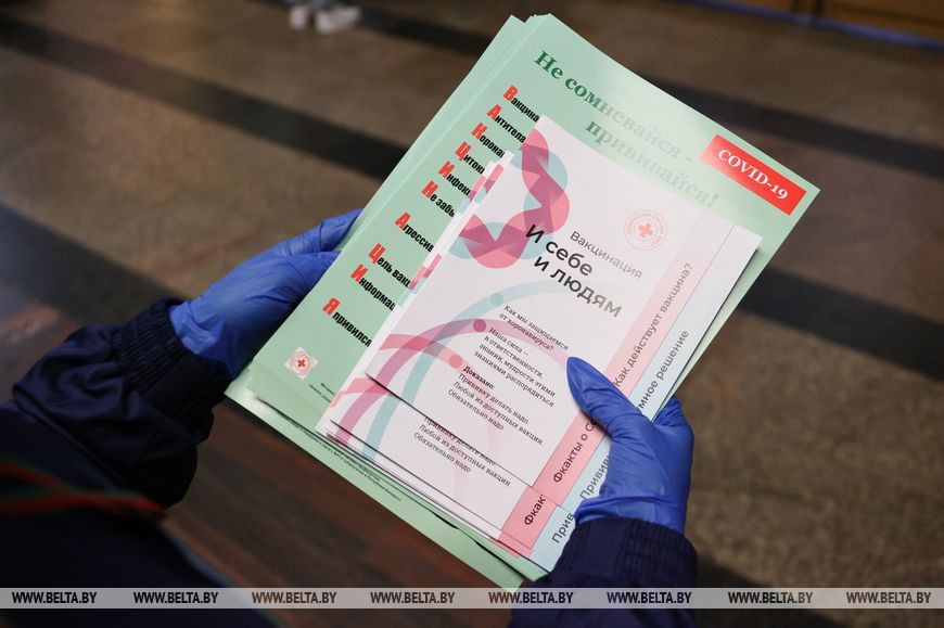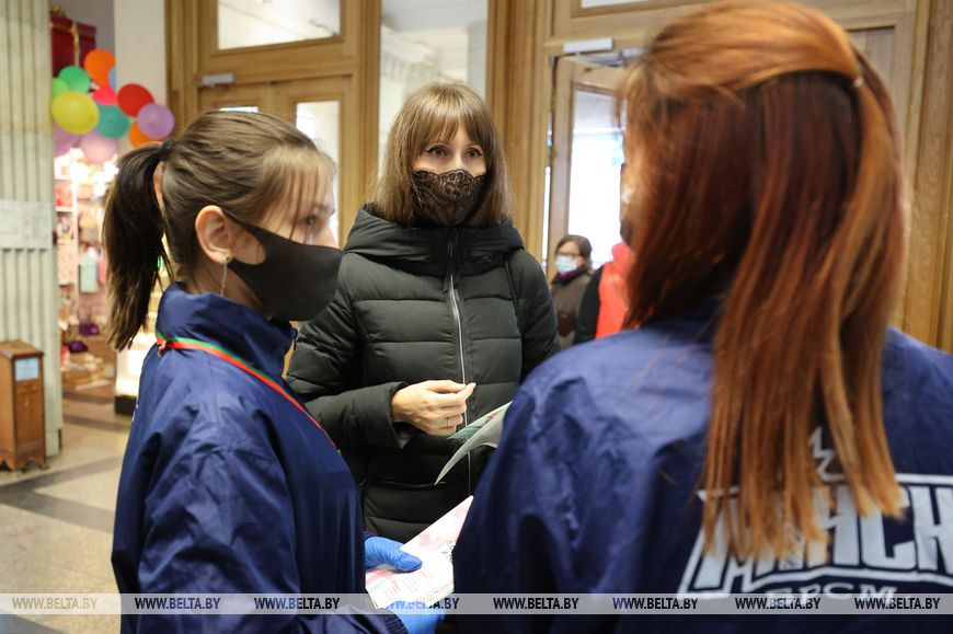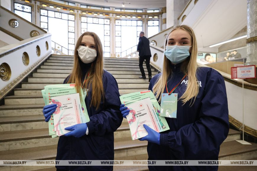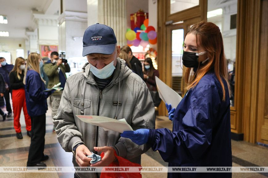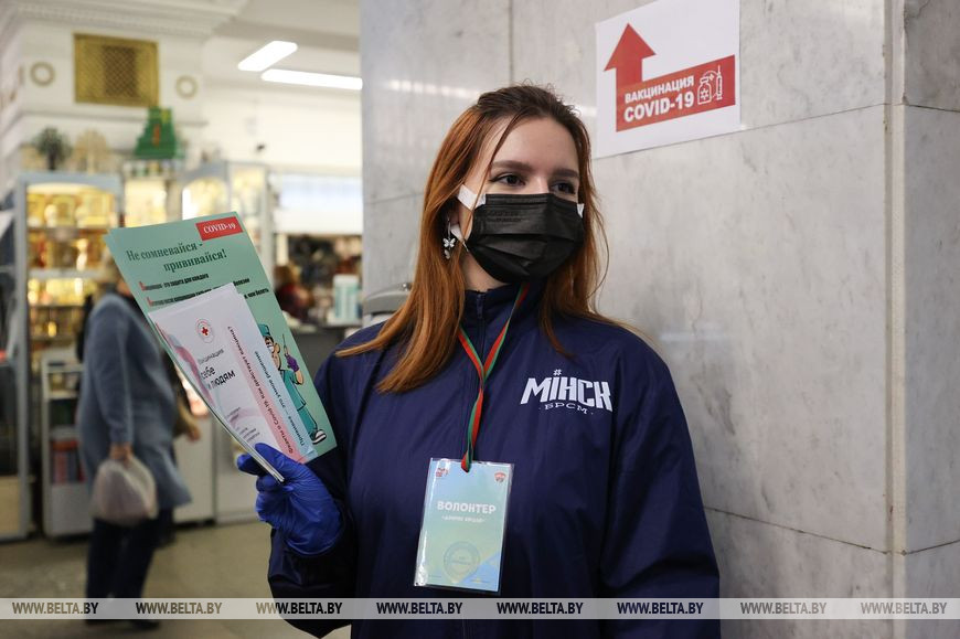 Первые мероприятия акции проходят в крупных столичных торговых центрах, где оборудованы пункты вакцинации. Это Galleria Minsk, "Замок", торговый дом "На Немиге", а также ГУМ. "В связи с непростой эпидемиологической обстановкой запустили с различными общественными объединениями тематическую акцию "COVID-патруль". Начали с Минска, но с 19 октября она будет проходить в каждом областном центре, - сказал Александр Лукьянов. - Волонтеры, которые участвуют в мероприятии, в местах массового пребывания людей информируют жителей и гостей столицы об обязательном соблюдении масочного режима, других санэпидмерах, рассказывают о важности своевременного вакцинирования, ориентируют по местам, где можно привиться. Делают все возможное для предотвращения распространения коронавирусной инфекции".