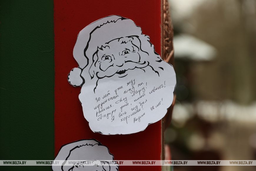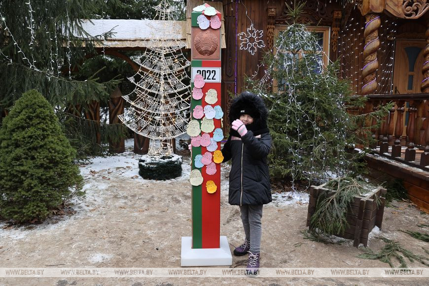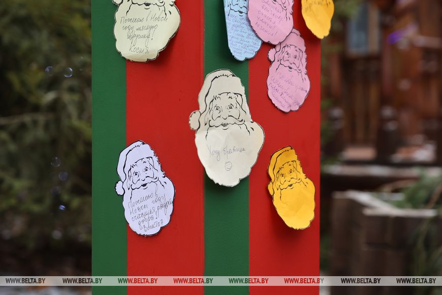 Когда стражи границ отправились выполнять приказ, вниманием Деда Мороза всецело завладели посетители. Сегодня к нему в гости приехали дети военнослужащих Брестской Краснознаменной пограничной группы имени Ф.Э Дзержинского. Они пообщались и вместе сфотографировались, а на символичном пограничном столбе оставили свои новогодние пожелания.