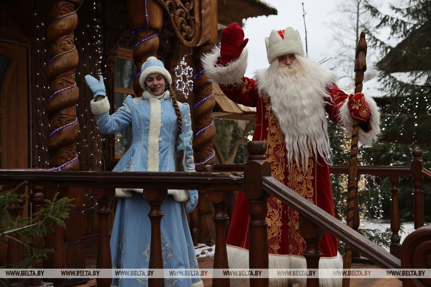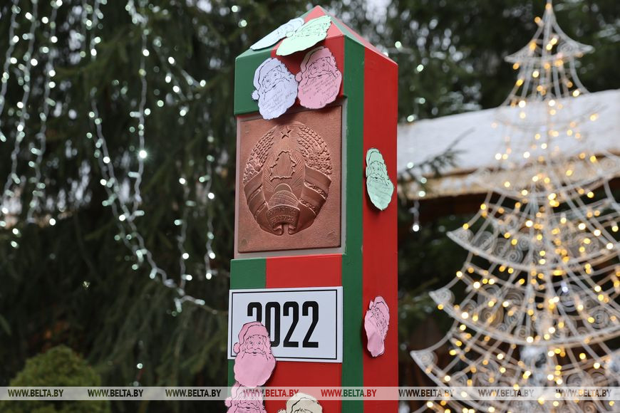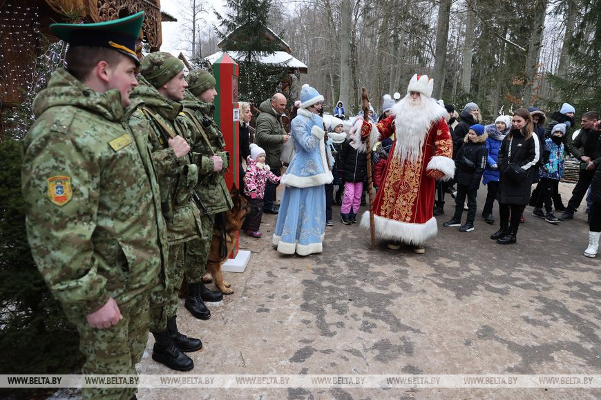 29 декабря, Каменецкий район /Корр. БЕЛТА/. Символический ритуал постановки приказа пограничному наряду на беспрепятственный пропуск Нового 2022 года прошел сегодня в поместье белорусского Деда Мороза в национальном парке "Беловежская пуща", передает корреспондент БЕЛТА.