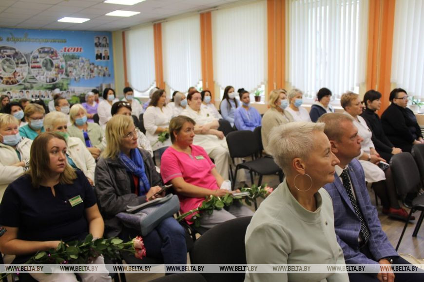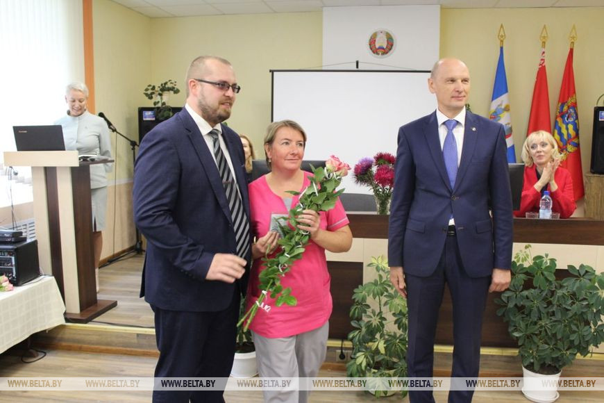 Среди медперсонала Узденской районной больницы за успешную работу по оказанию медпомощи населению в условиях неблагополучной эпидемической ситуации были отмечены добрым словом и общественными наградами врач-терапевт Наталия Зыкова, медсестра общей практики Екатерина Рудницкая, санитарка Ирина Павлович и главврач Вадим Лабанок. Награду вручили и зампредседателя Узденского райисполкома по идеологии и социальной сфере Анжеле Федченко.