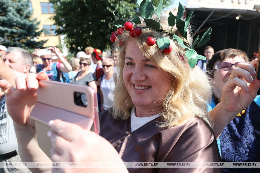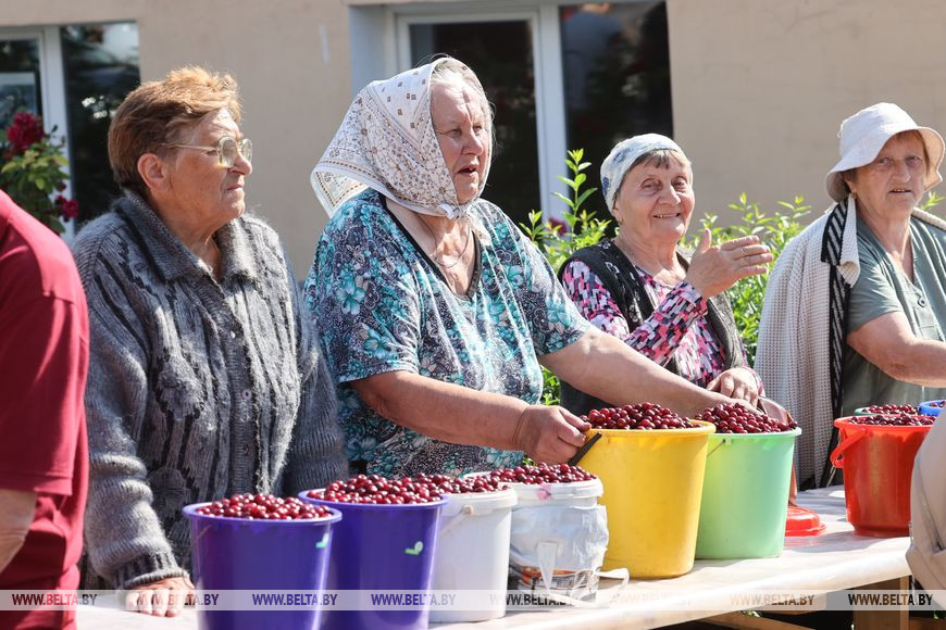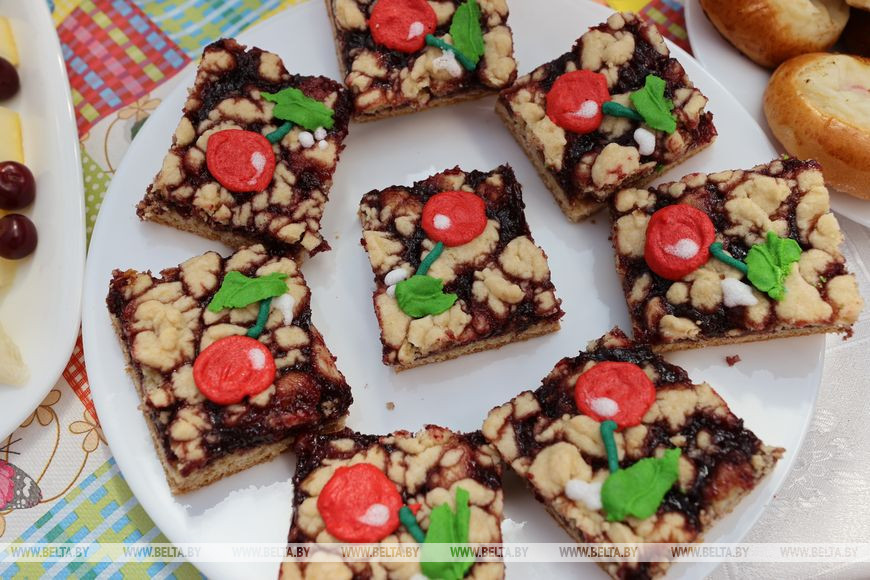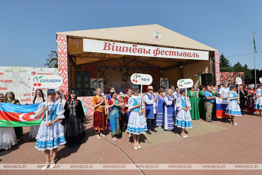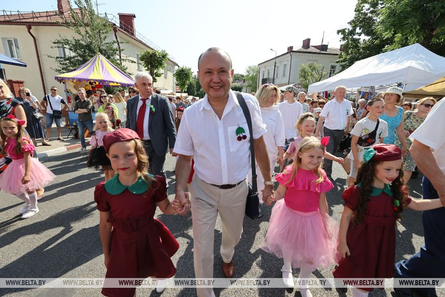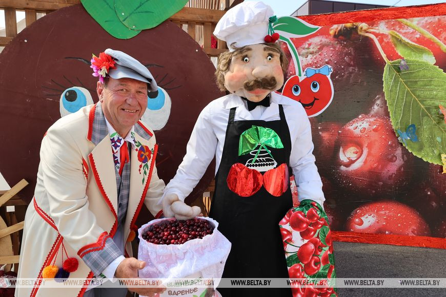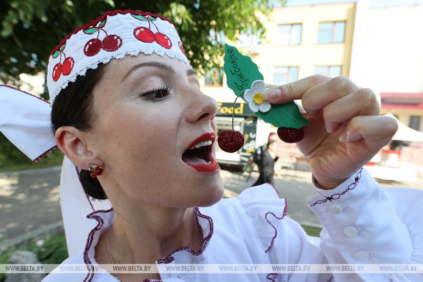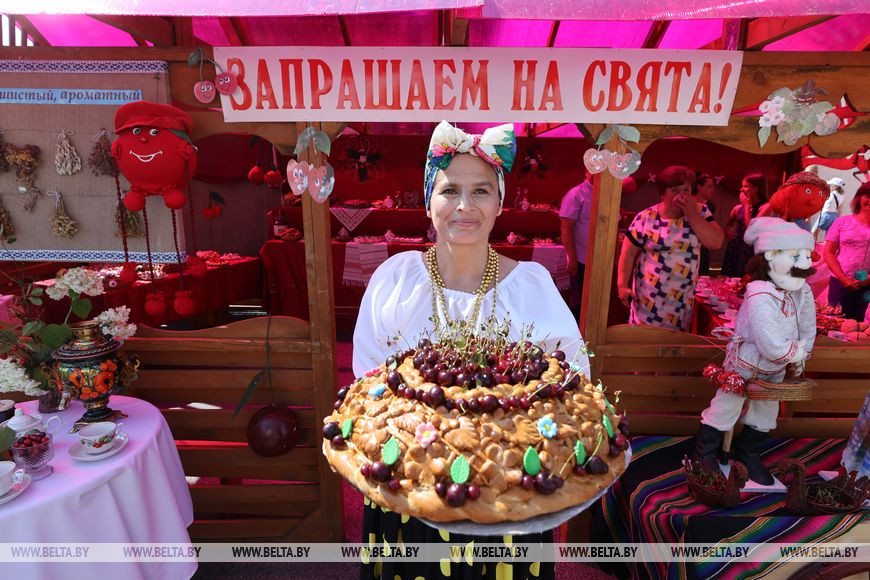 23 июля, Витебск /Корр. БЕЛТА/. Международный праздник "Вишневый фестиваль" в Глубоком в этом году отмечает свою первую круглую дату и проходит под знаком юбилея - #Вишня10. Второй день стал "вишневой жемчужиной" праздника. Прошло торжественное шествие участников и гостей фестиваля, заработали подворья, жители райцентра и участники поучаствовали в конкурсе "Варим вместе вишневое варенье" и продегустировали получившиеся лакомства, а также посоревновались, кто лучше сыграет на баяне и аккордеоне. Впервые на фесте прошла областная выставка-конкурс "Вишневая мозаика", где участники представяли свои работы.-0-
