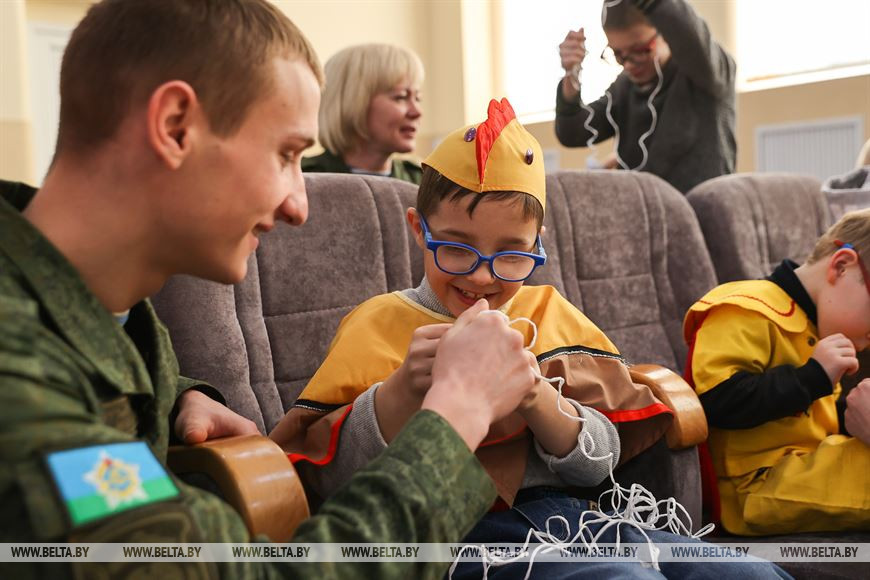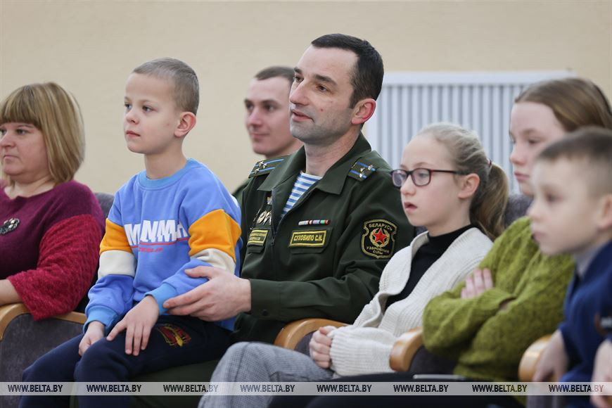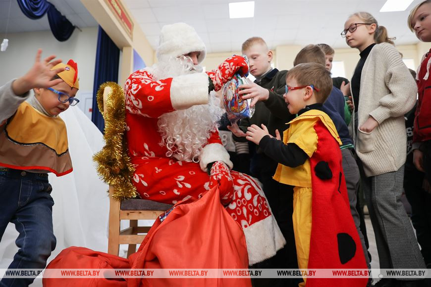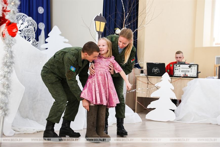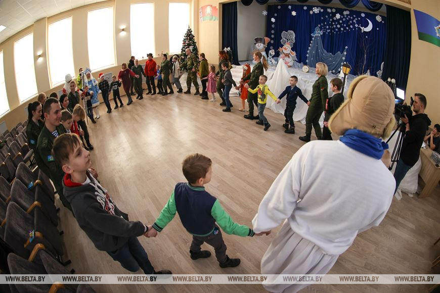 28 декабря, Кобрин /Корр. БЕЛТА/. 28 декабря военнослужащие 38-й Брестской отдельной гвардейской Венской Краснознаменной десантно-штурмовой бригады совместно с Брестским областным детским фондом присоединились к республиканской акции "Наши дети" и поздравили воспитанников Кобринской детской деревни с наступающими новогодними праздниками. Во время акции для детей на территории войсковой части состоялся новогодний утренник с участием Деда Мороза, Снегурочки и сказочных персонажей.-0-