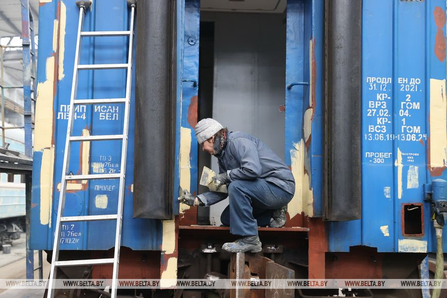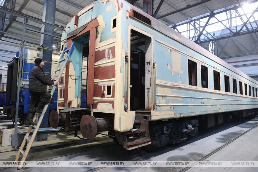 26 января, Гомель /Корр. БЕЛТА/. На ЗАО "Гомельский вагоностроительный завод" ремонтируют и восстанавливают пассажирские вагоны, почтово-багажные и вагоны специального назначения. Активными партнерами предприятия в последние годы выступают железнодорожники Казахстана. В настоящее время экспорт услуг для этой страны составляет более 40%. В ремонтных цехах Гомельского вагоностроительного завода одновременно находится более 100 вагонов, а ежемесячно на линейку готовности выпускаются более 50 находящихся в ремонте вагонов, почти половина из которых - для Казахстанских железных дорог.-0-