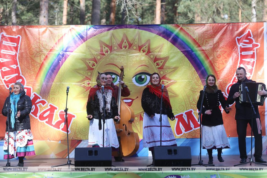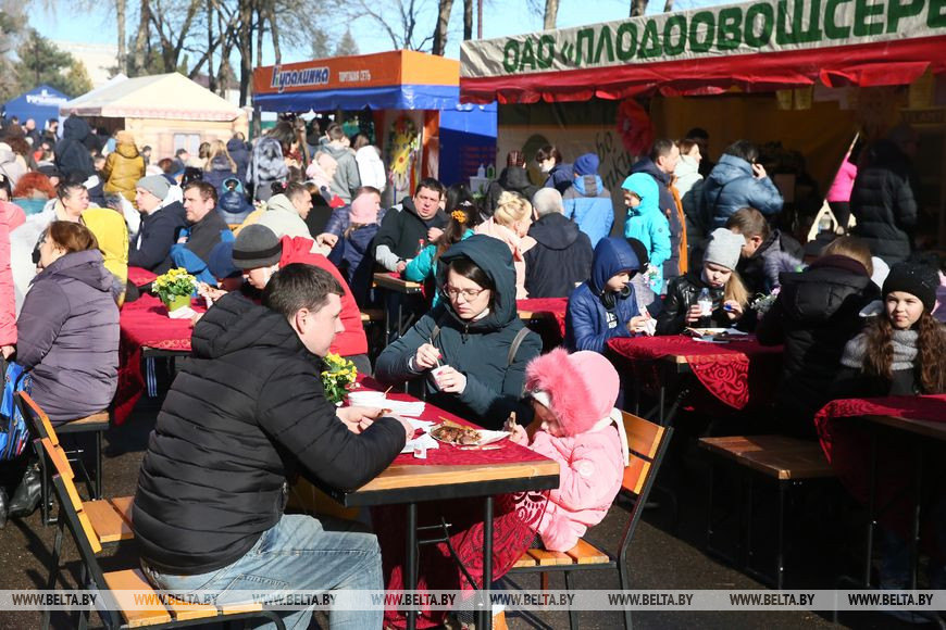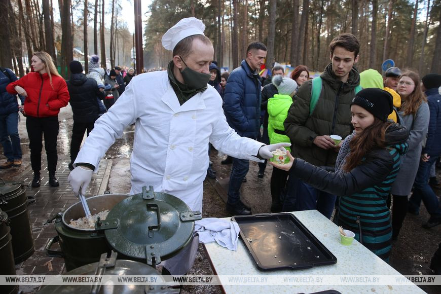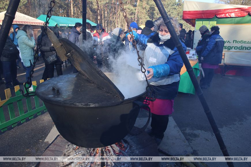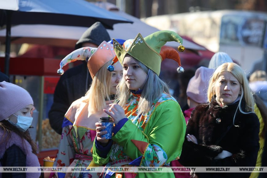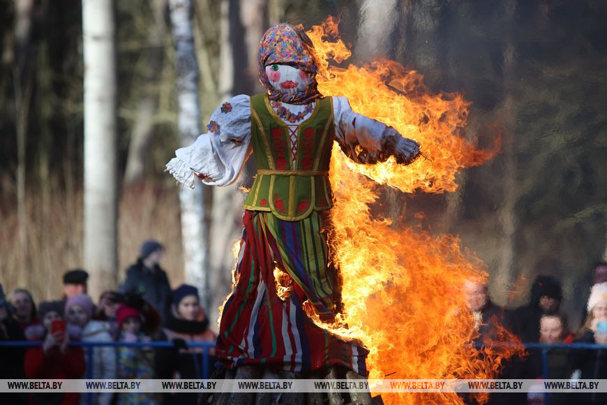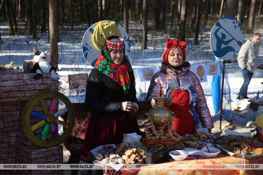 27 февраля, Гродно /Корр. БЕЛТА/. Масленичные гуляния "Блин-Party - 2021" прошли 27 февраля в лесопарке "Пышки". На территории работали 17 спортивно-развлекательных интерактивных площадок. Открылся праздник театрализованным представлением с участием Зимушки-зимы, а завершился обрядом сжигания чучела.-0-