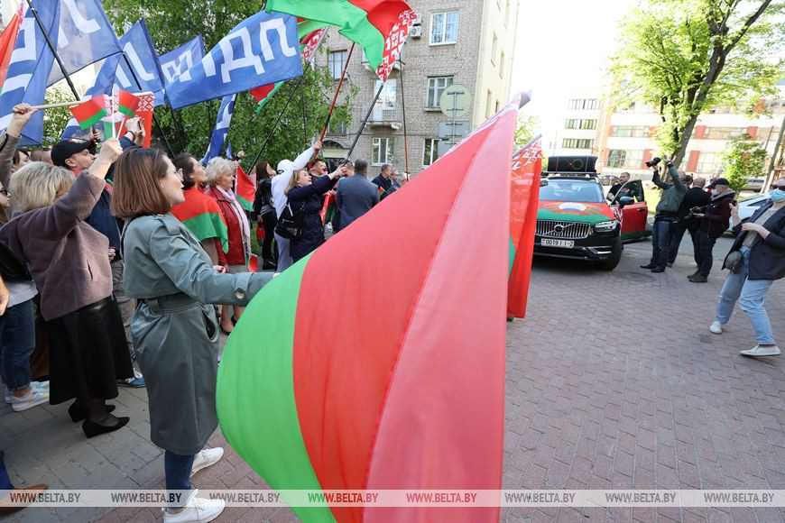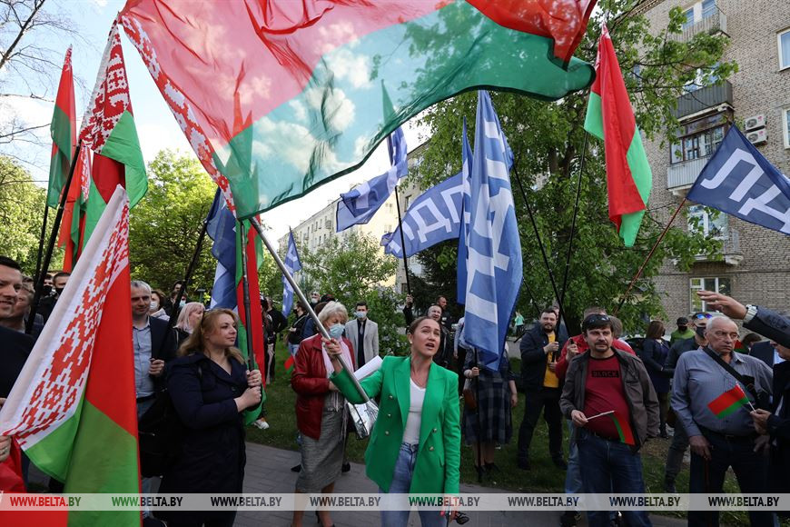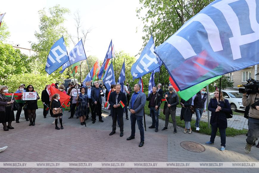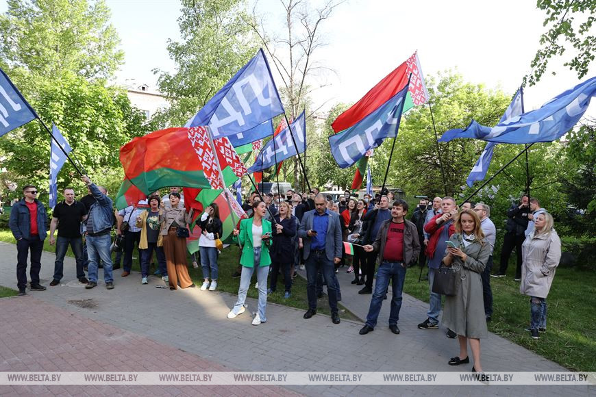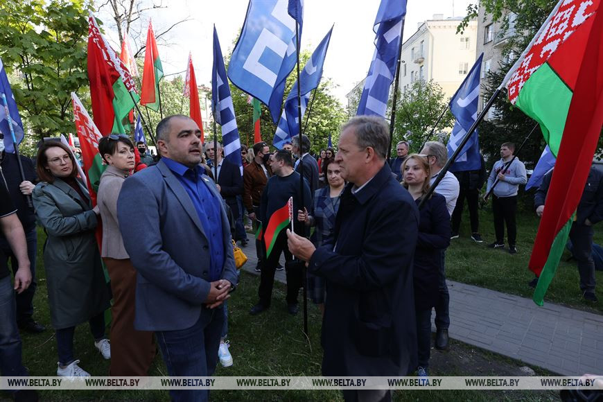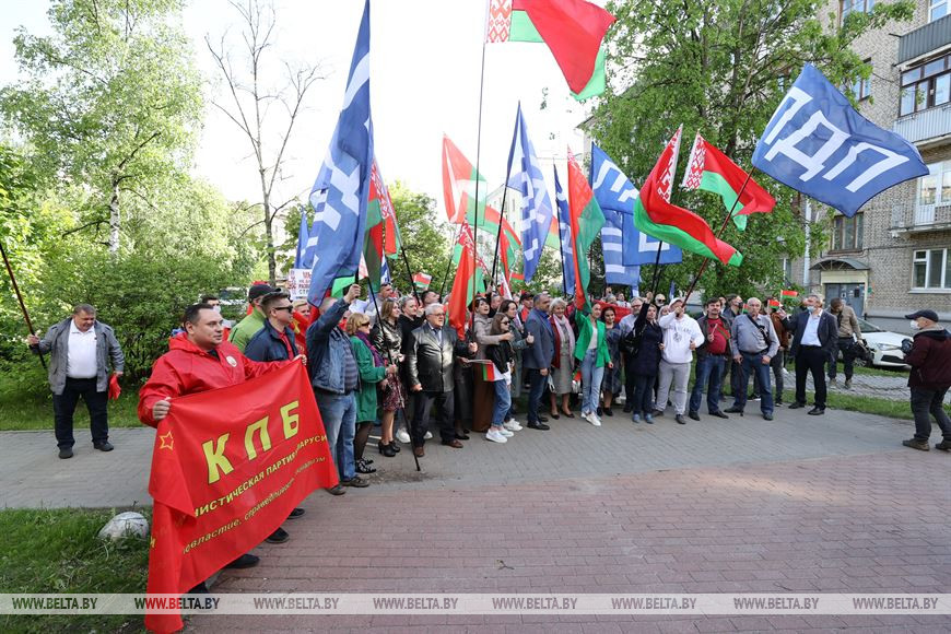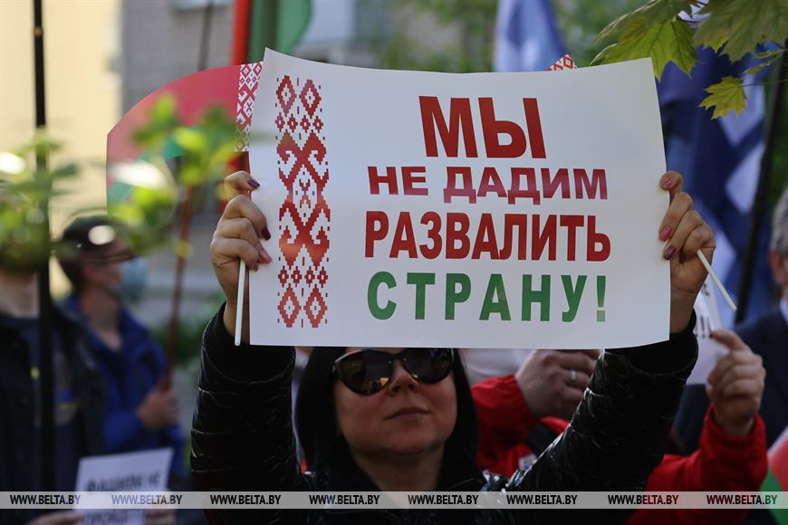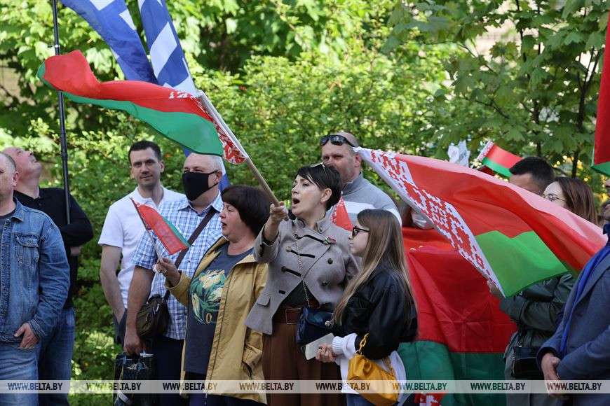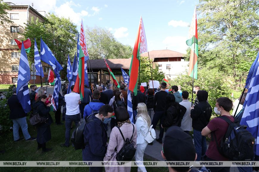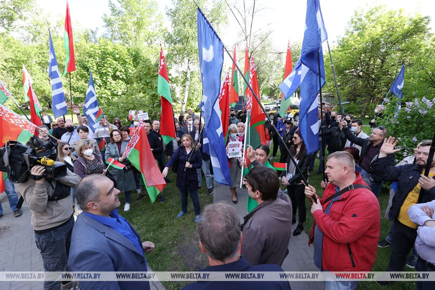 24 мая, Минск /Корр. БЕЛТА/. К посольству Латвии в Минске пришли неравнодушные белорусы, чтобы выразить протест против вмешательства во внутренние дела Беларуси.-0-